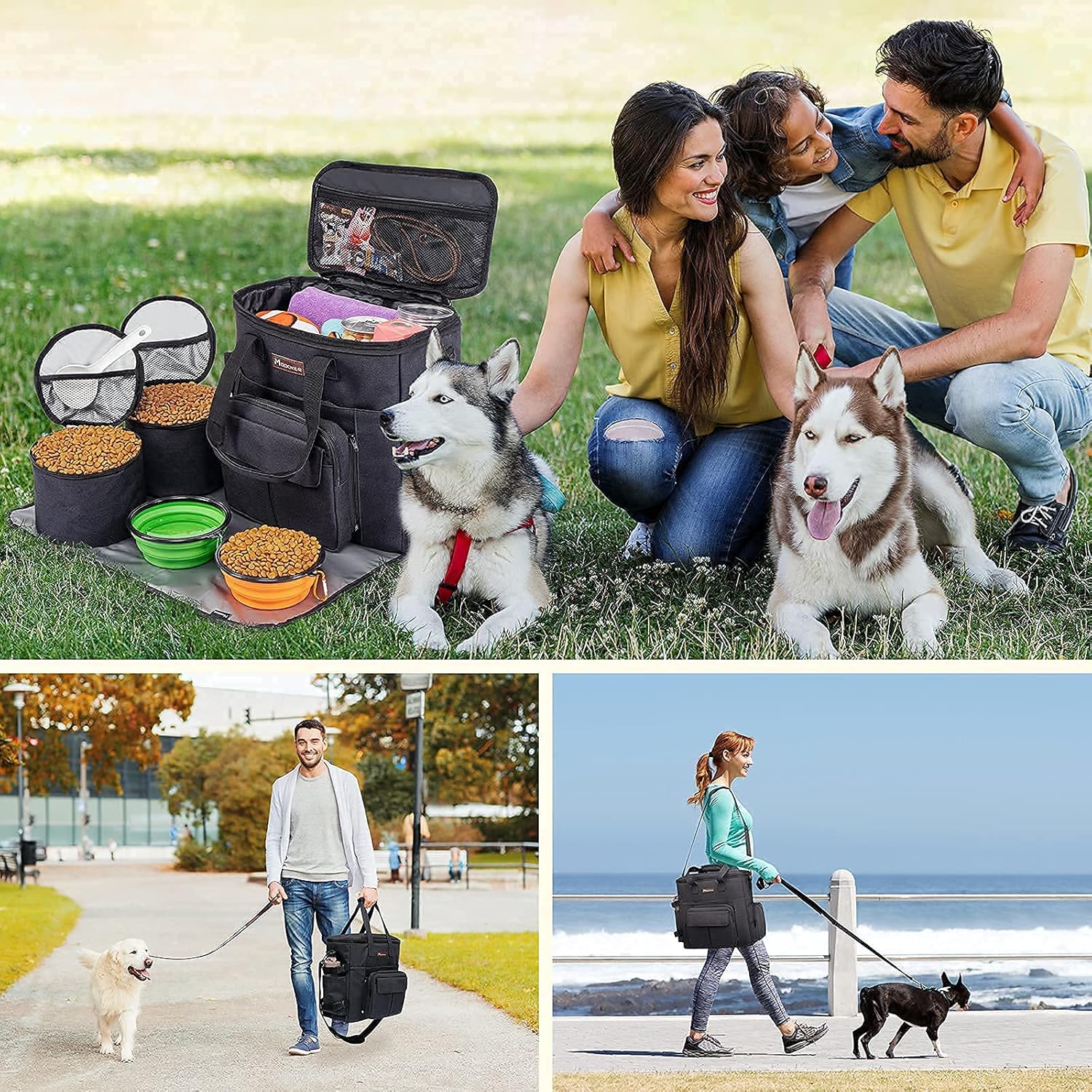 • All-in-One Bag with Accessories: Come with 1 Dog Organizer bag,1 Dog backpack, 1 Padded shoulder strap, 1 Water-Resistant Placemat, 2 Fully insulated food containers, 2 Collapsible dog bowls( RANDOM COLOR ). All-in-one option for storing, organizing, and feeding. Traveling with this bag will ensure your pet feels comfortable no matter where you're headed