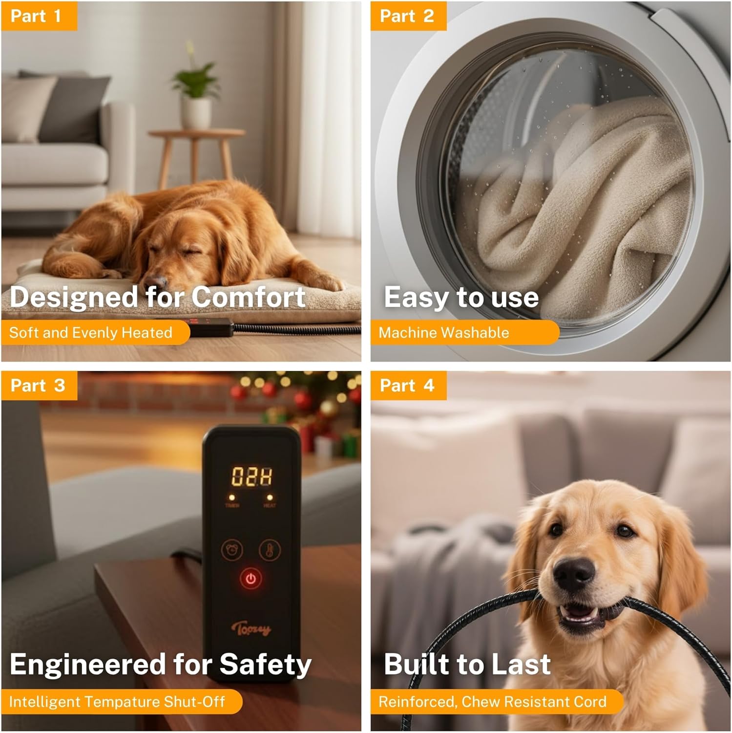 • ❤【Temperature Adjustable Function】Controlling the temperature of electric dog heating pad with the LED controller, it can adjust the temperature easily with 6 temperature settings ( 86-131℉/30-55℃) to accommodate your pets.