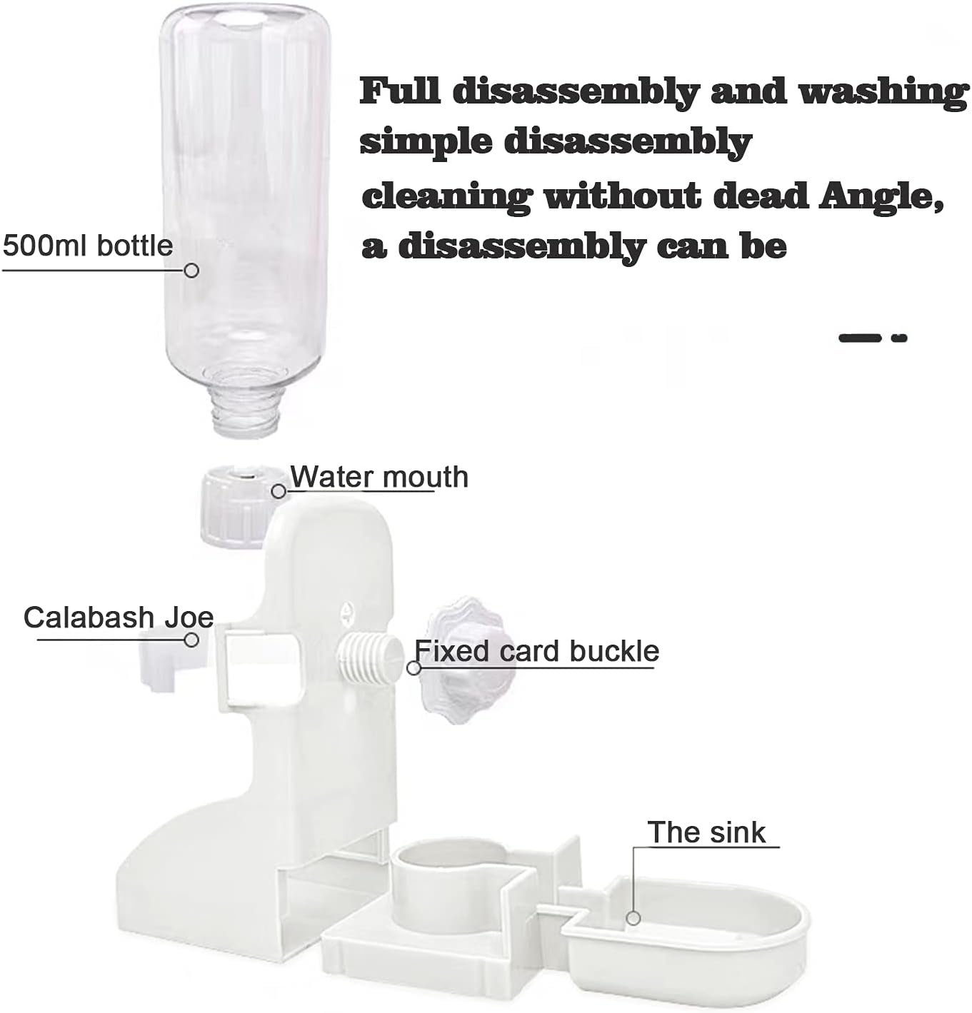 • 【500ml/17oz Water Bottle】Our water dispenser is made of non-toxic and durable plastic. large capacity water feeder, no longer need to worry about your pet has not enough water to drink if you are not home all day.Water bottle holder is suitable for most cages.