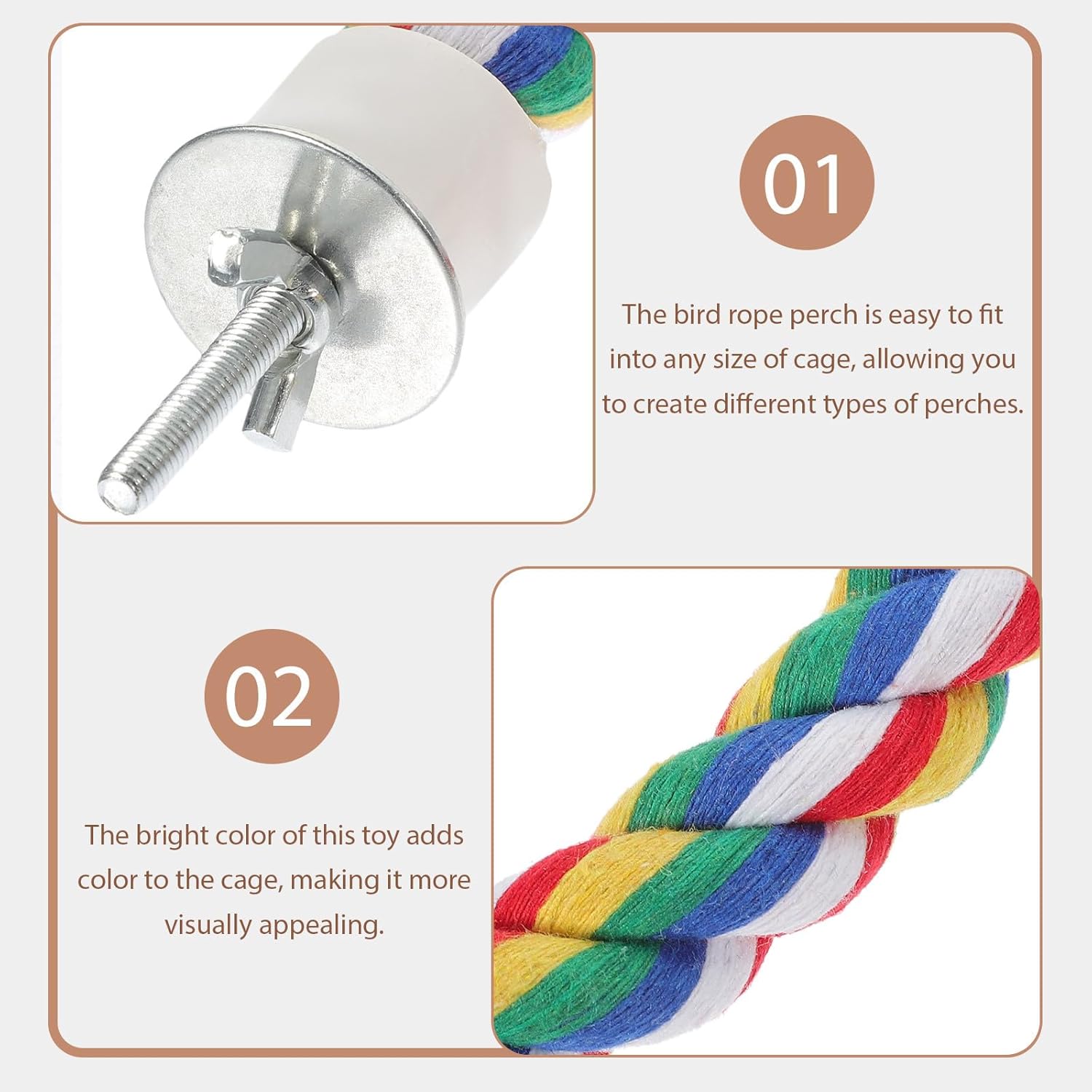 • Thick and Firm:The parrot perches for large birds is made of durable multi-colored cotton thread with a steel wire in the middle, which provides a firm support for your pet bird. Also, the thick cotton thread wraps around the steel wire well, don't have to worry about your pet getting hurt during play