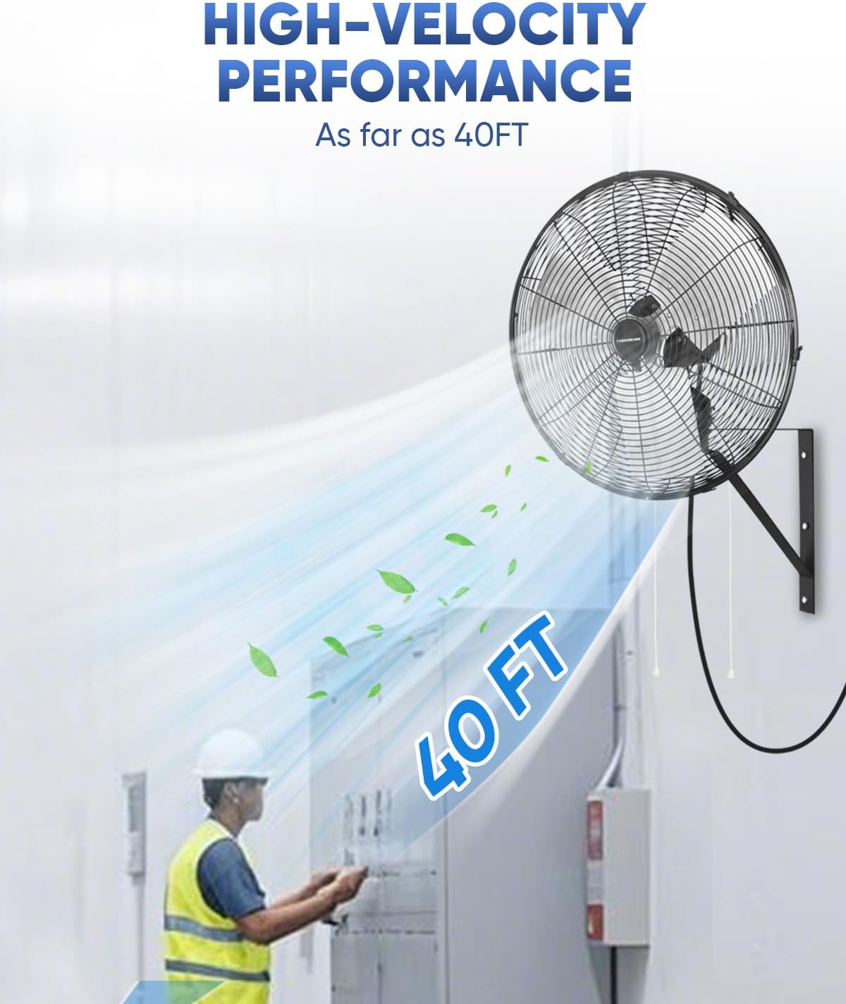 • Durable and Versatile Design. Built for heavy-duty use, this wall-mounted fan is perfect for industrial settings, auto repair shops, and commercial spaces. Its 20-inch size and oscillating feature provide wide coverage, ensuring consistent airflow across the room.