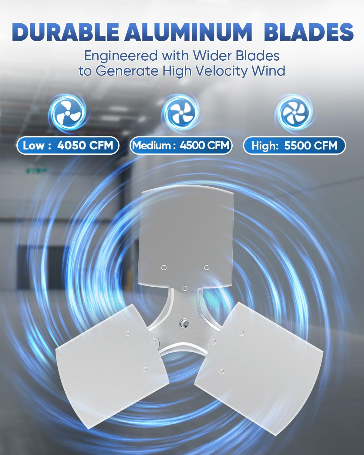 • Powerful Airflow for Large Spaces. The KEN BROWN 20 Inch Industrial Oscillating Wall Mount Fan delivers a maximum airflow of up to 5500 CFM, making it ideal for cooling large areas such as garages, workshops, and outdoor patios. Its robust performance ensures efficient air circulation in industrial environments.