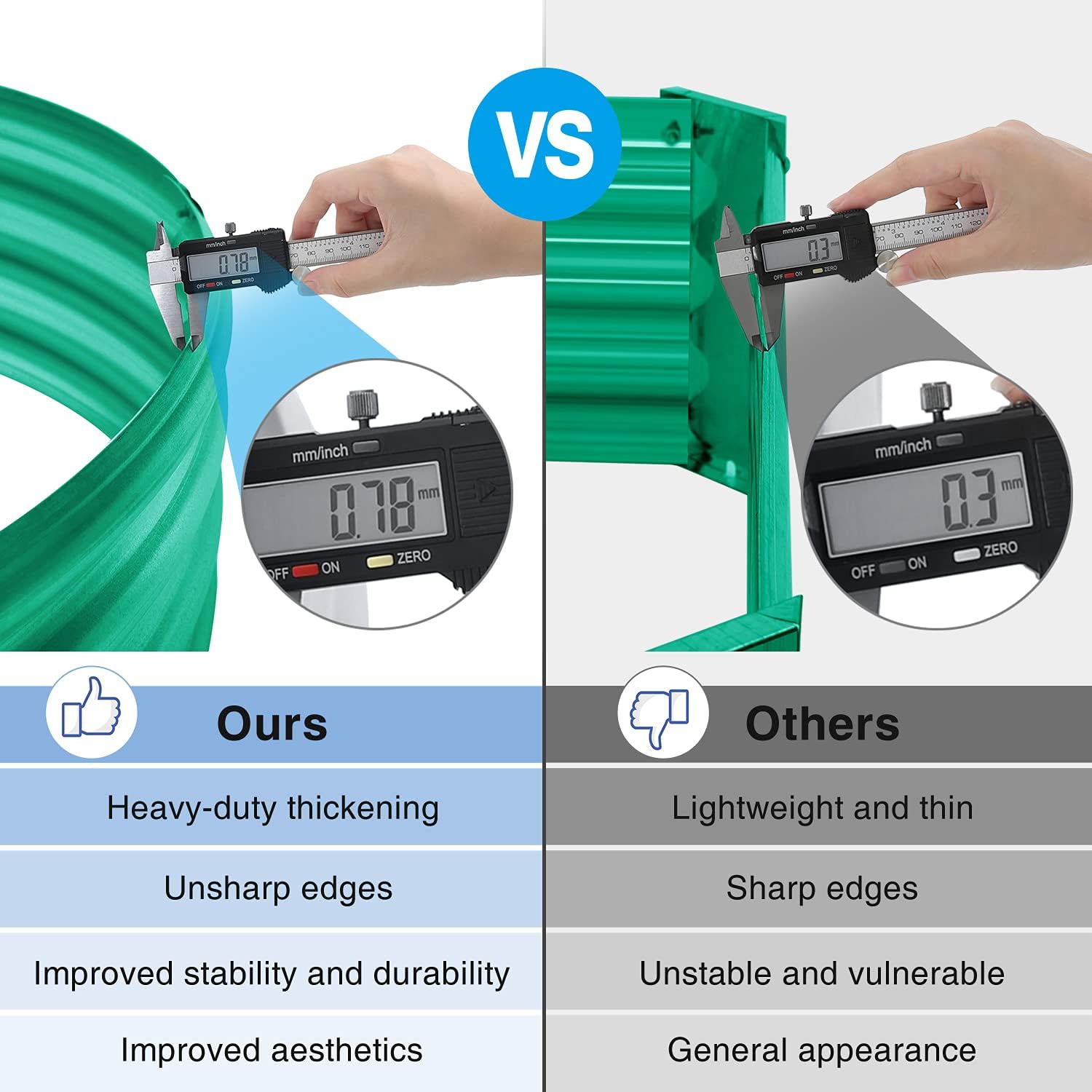 • Double thickness: The average thickness of this galvanized planter galvanized sheet reaches 0.78mm, and the thickest part can reach 1.56mm, which is extremely stable. Compared with the ordinary rectangular elevated garden bed with a thickness of 0.3mm, it will be the right choice for you. buy it! ! !