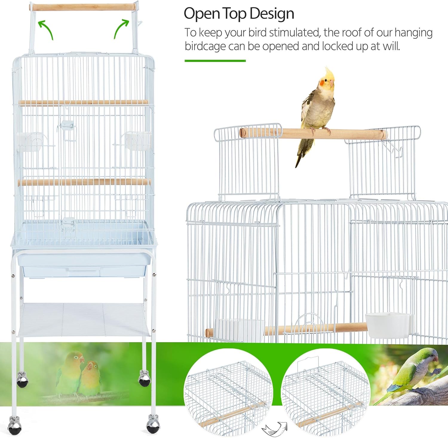 Yaheetech Play Open Top Parrot Bird Cages for Sun Parakeet Cockatiel Green Cheek Conure Lovebird w/Detachable Rolling Stand, White