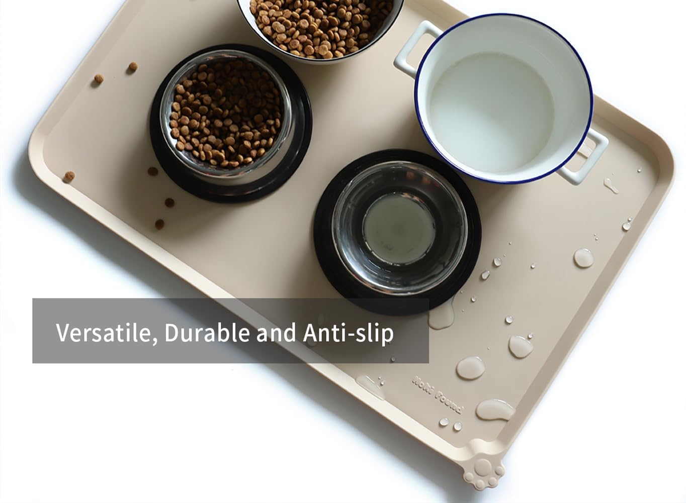 Hoki Found Large Silicone Pet Feeding Tray - Waterproof Dog Pet Cat Feeding Mat - Non Slip Pet Dog Cat Food Bowl Mats Placemat -Pet Water Mats for Carpet -Papayawhip