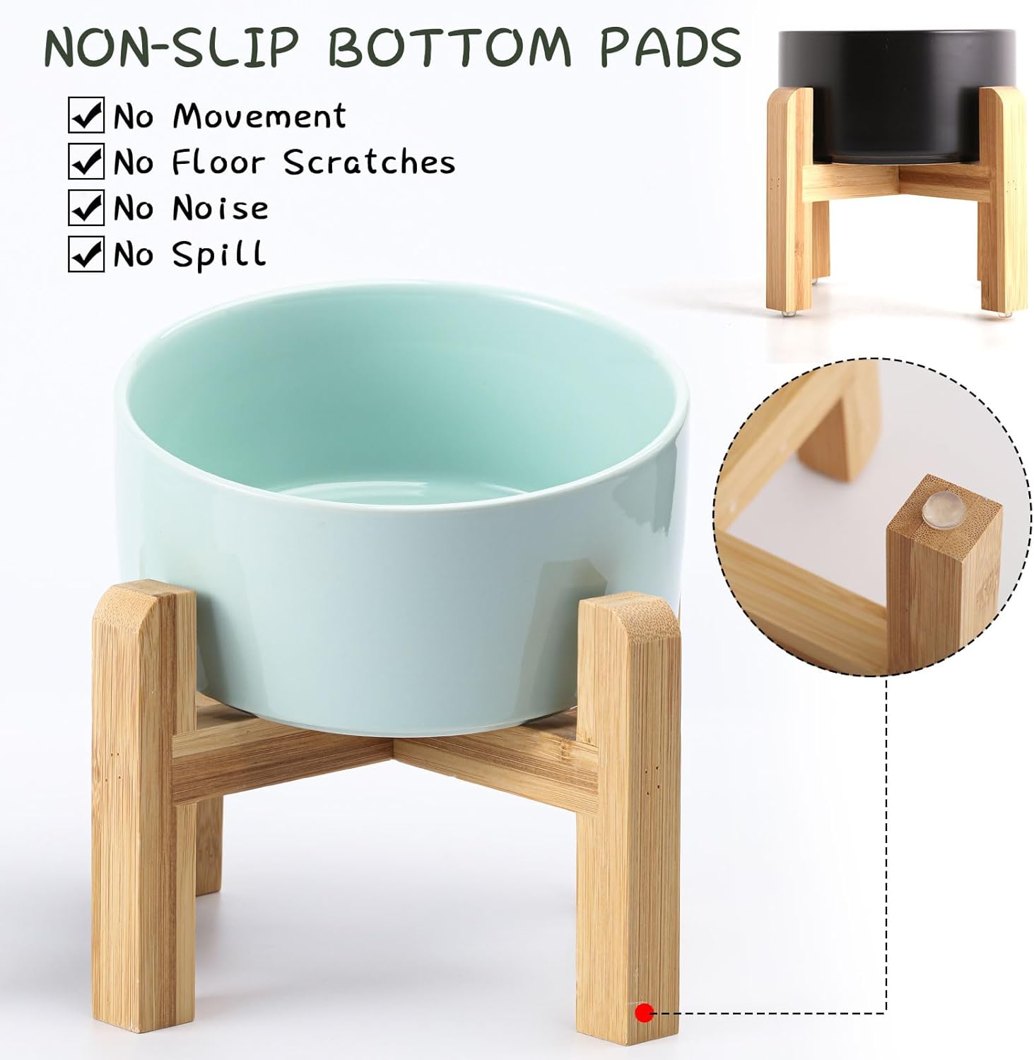 • NON SLIP WOOD STAND -You can get two different heights by flipping the bamboo stand,the elevated cat bowls are perfect for cats and small size dogs from different stages of childhood to adulthood, The wood stand on the bowls stopping ceramic cat dog bowl from sliding around, Keeps pet food and water in the bowls.