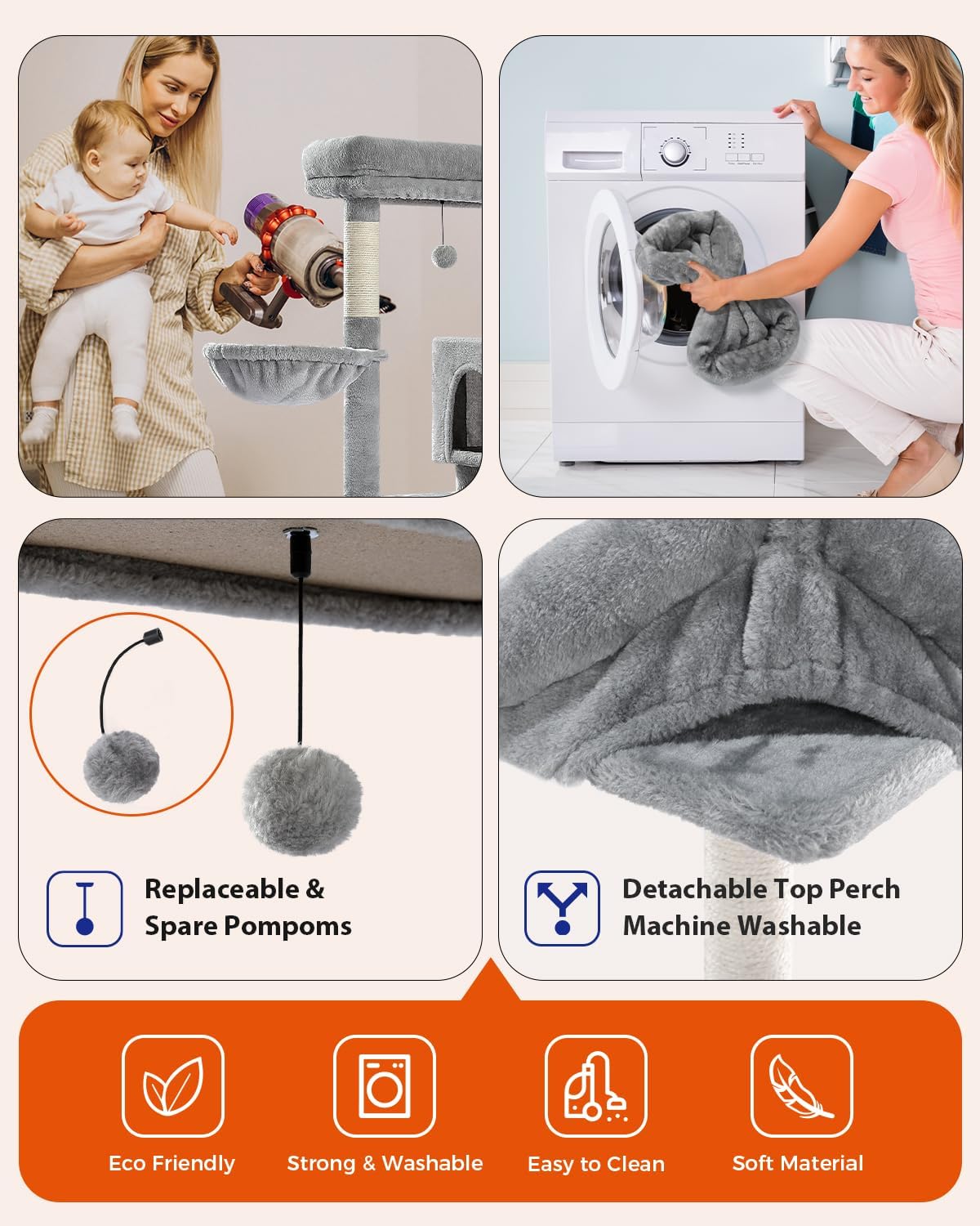 • Reliable Quality: Stability and safety are always the key points. Crafted by soft plush fabric, CARB-certified natural particle boards, firm sisal wrapped posts and strengthened base, it’s sturdy and safe for fat and heavy cats to bounce and enjoy up on their castle with ease