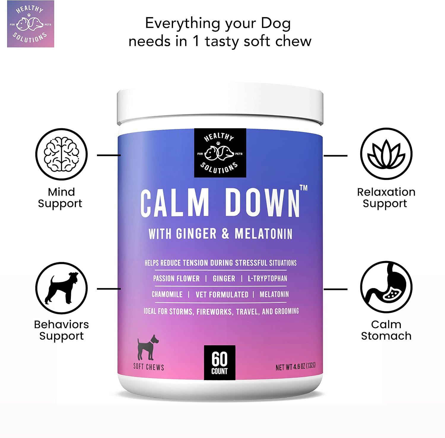 • 🗸 ALL AGES & DOG BREEDS -- Calm Down Soft Chews work great for all breeds at any life stage including puppies over the age of 12 weeks. These tasty dog calming chews - anxiety relief treats can be used daily or as needed.
