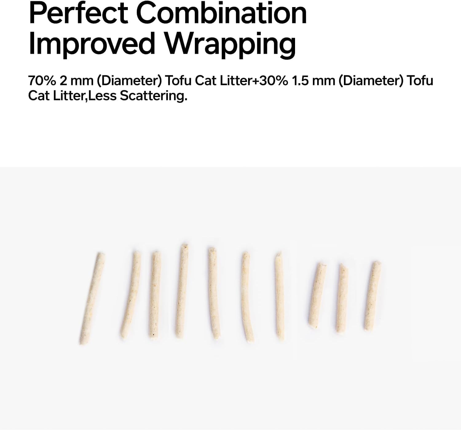 • 【Less Scattering, Improved Wrapping】70% 2 mm (Diameter) Tofu Cat Litter+30% 1.5 mm (Diameter) Tofu Cat Litter。Perfect Combination, Less Scattering, Improved Wrapping.