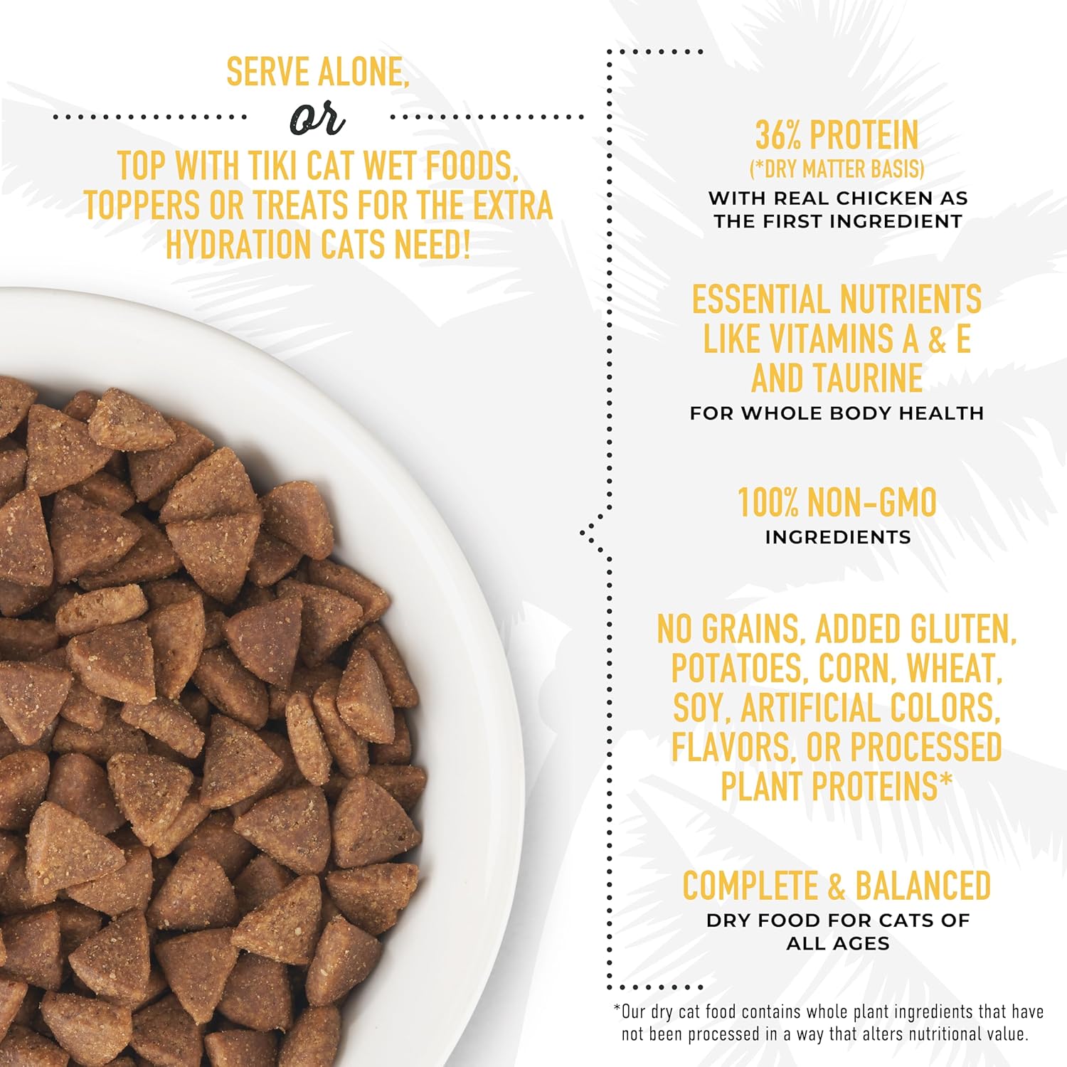• SATISFYING, CRUNCHY KIBBLE - Tiki Cat Born Carnivore Indoor Health dry cat food is minimally processed and packed with meaty flavors from real ingredients that cats crave.