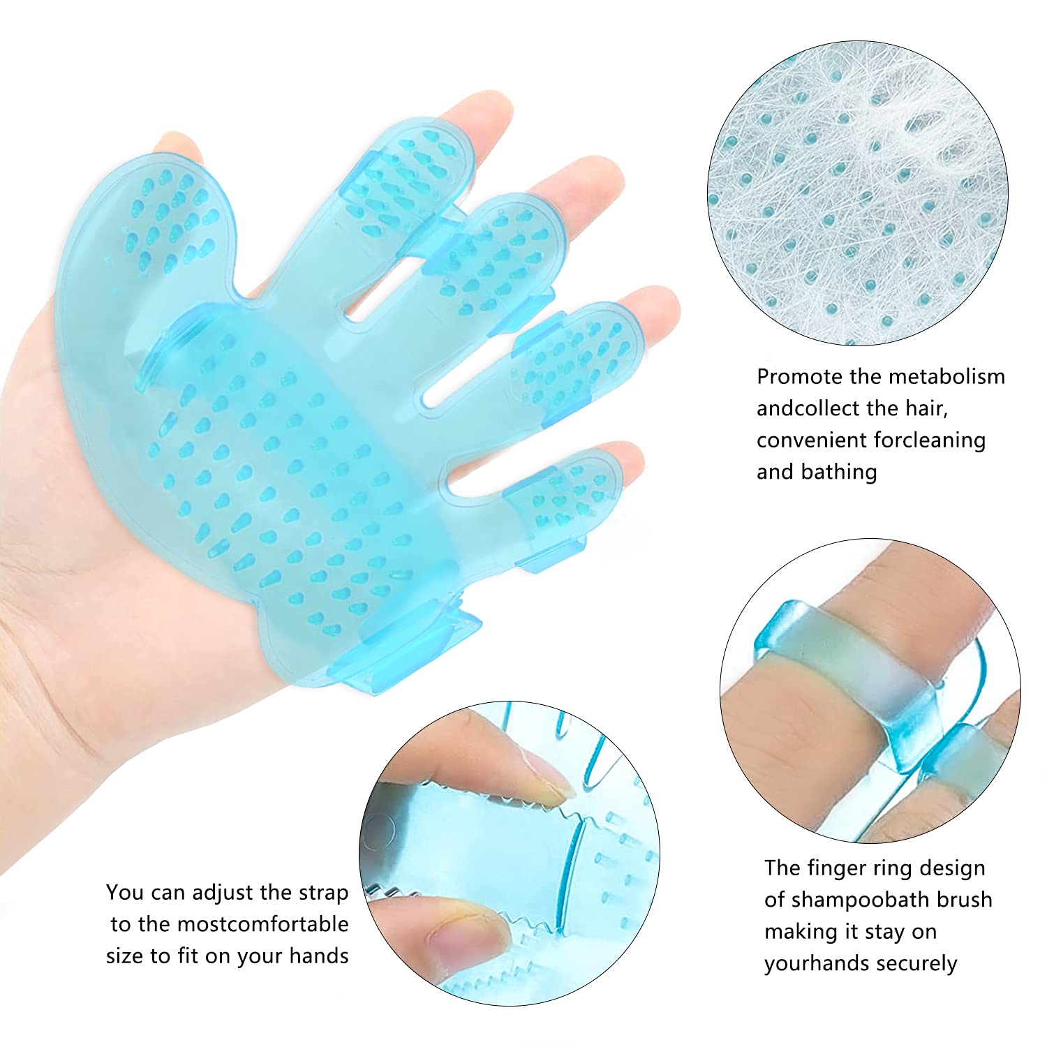 • 🐰Small Animal Cleaning Tools - This pet bath brush massage comb is specially made for pet showers, he grooming brush is equipped with an adjustable handle, which can be fit for different size hand, with massage particles. It can comb the hair and massage the skin when taking a bath, which not only makes it cleaner, but also promote the metabolism benefits the health of the fur for you pet