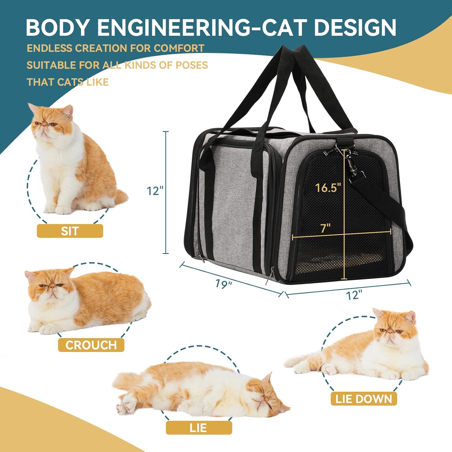 • Expandable Cat Dog Carrier: Please measure your pet before purchasing! The expandable cat carrier measures 19"Lx 12"Wx 12"H and has an extension of 16"Lx 11.5"W 11" H by expanding the mesh windows. It fits pets up to 18"Lx 11"Wx 11"H and a Max load of 18 lbs (8 kg). The product weighs 3.2 lbs