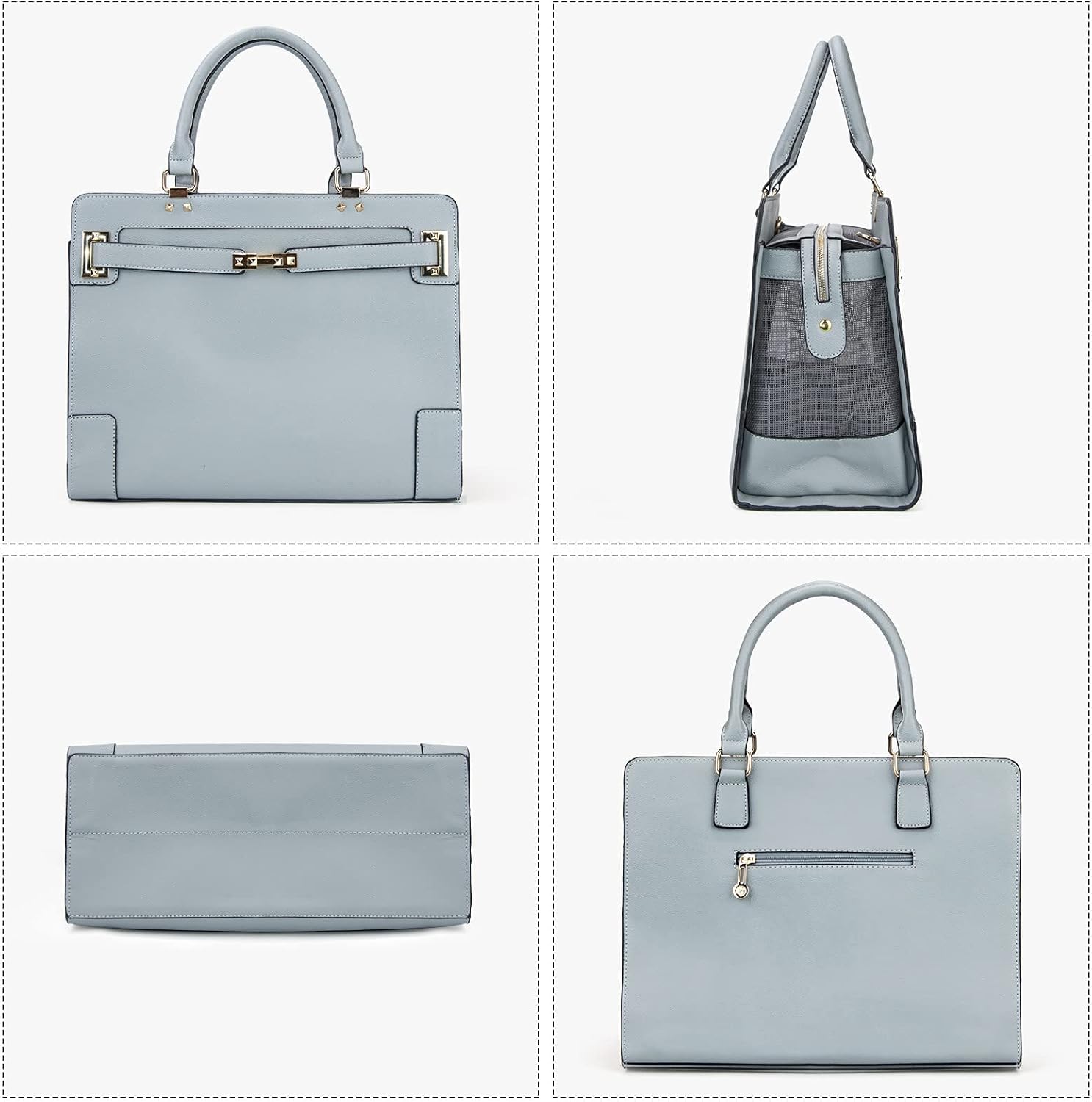 Fashion Pet Carrier Dog Cat Carrier Purse Soft-Sided Leather Handbag Pet Tote Bag for Small Dogs Puppy and Cats TSA Airline Approved (Grey)