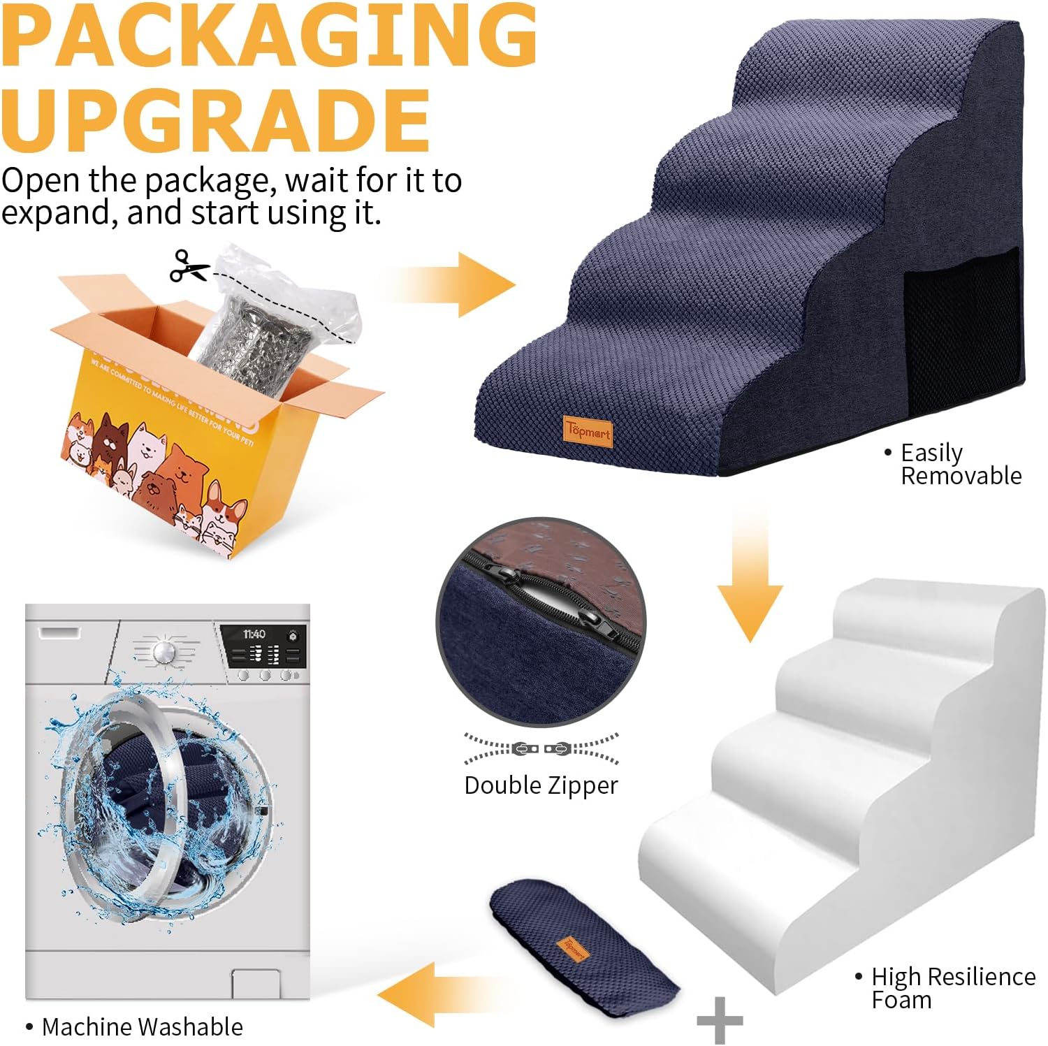 • High Quality Sponge: Made of 30D high-density sponge, strong resilience, not easy to deformation, very durable. Soft sponge provides a very comfortable touch to the pet. Even if the pet runs and plays or human accidentally hit the Topmart dog stairs will not be injured.