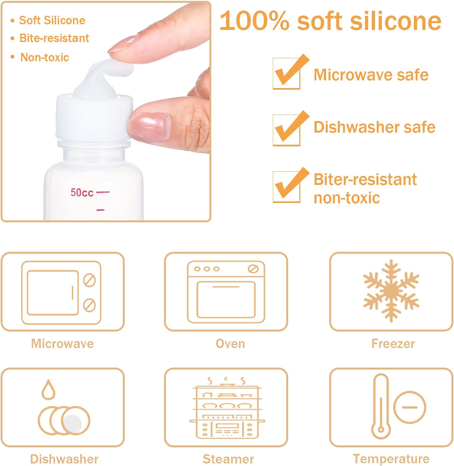 • Package includes: you will get 2 pieces of 50 CC milk bottles, 8 pieces of nipples in 4 sizes, 2 pieces of brushes and 5 pieces of dog nursing syringes in 1 ml, 5 ml and 10 ml, 17 pieces in total, ample quantity can provide various needs and replacements