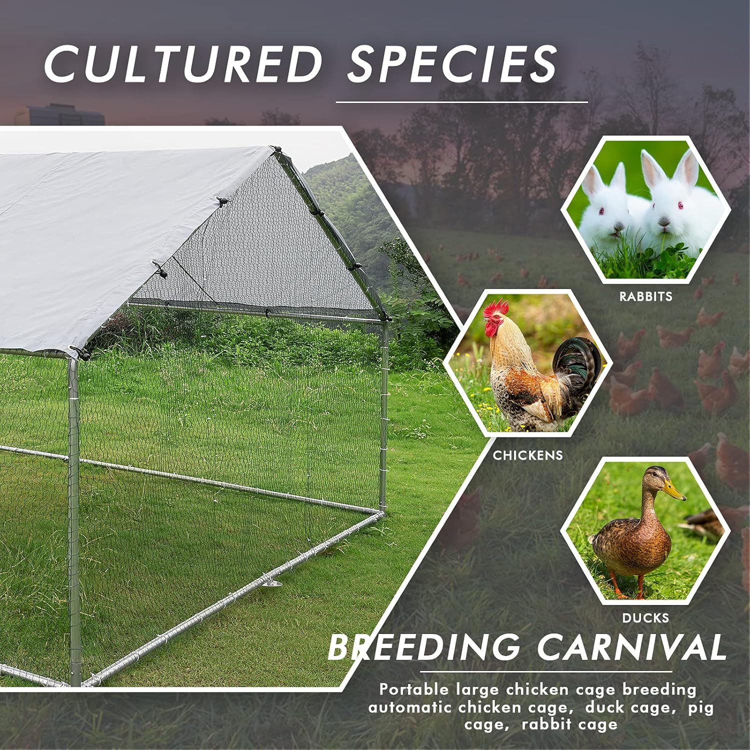 • Large Poultry cage: The coop size is 13.2’ L×9.84’ W× 6.4’ H, Enough for someone to walk in. The large coop is big enough to hold more than ten chickens