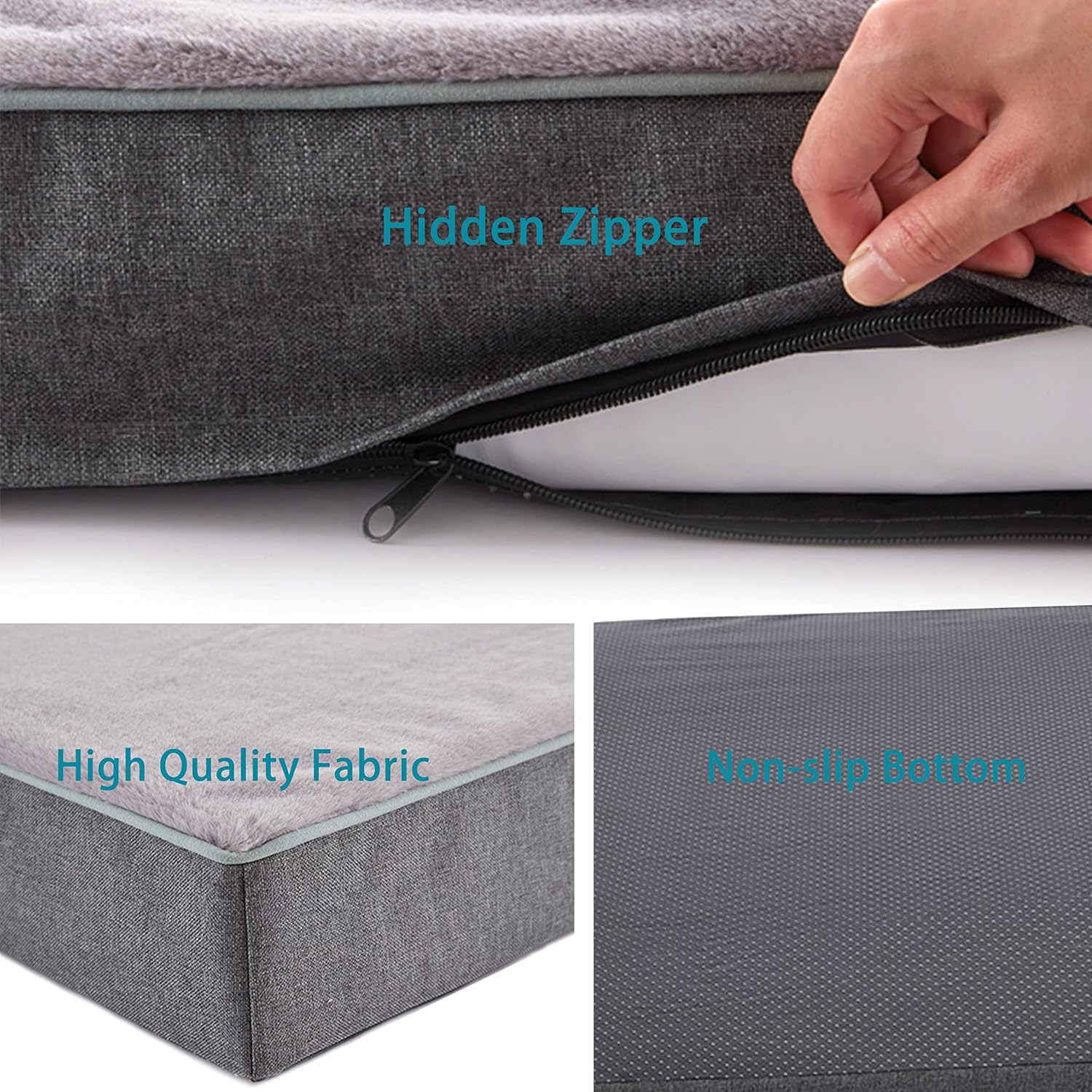 • Double layer cover:Full waterproof lining to protect memory foam;Machine washable and detachable plush surface cover with anti-skid function at the bottom.