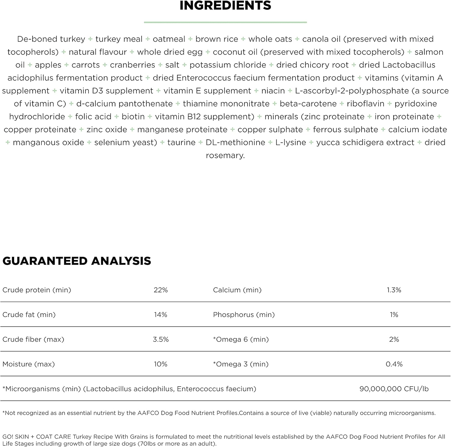 Go! Solutions Skin + Coat Care, Dry Dog Food, Turkey Recipe with Grains, 3.5 lb Bag