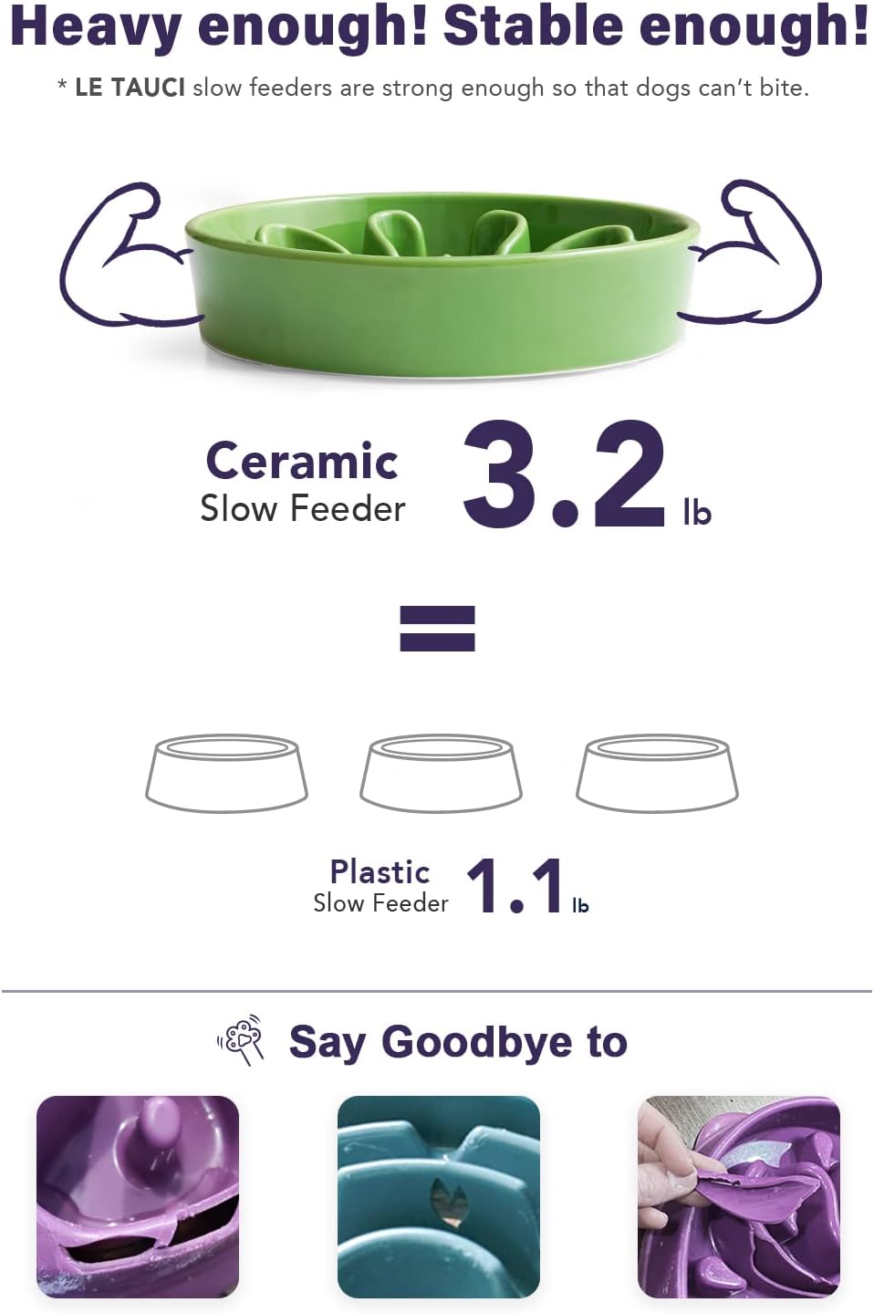 • Premium Ceramic, Durable and Stable: We use premium ceramic, not easy to damage, and it is sturdy and heavy enough to be more stable. However, if your dog is using a slow feeder bowl for the first time, we recommend starting with a silicone bowl to help them get used to it.