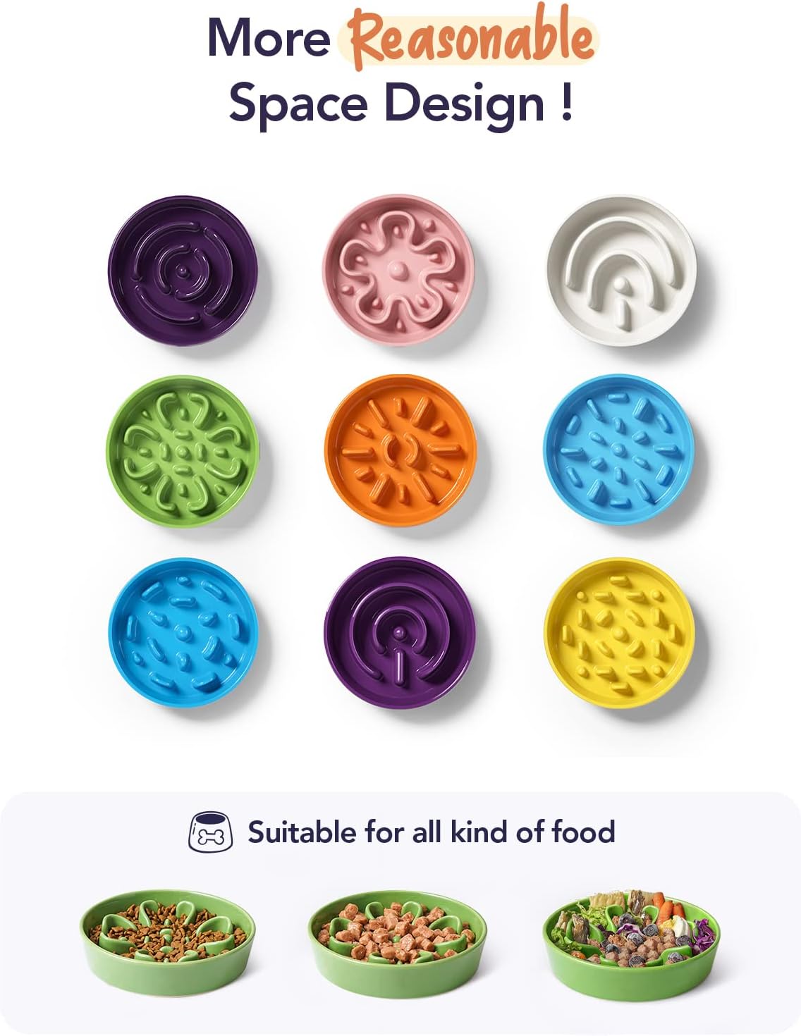 • Ceramic Material, More Suit For Your Dog: The veterinarian recommends using a ceramic bowl for your dogs. According to investigations, plastic bowls are easy to cause black jaws, and they are easily damaged by dogs, they will bite and eat by mistake. If you love your dog, our ceramic slow food bowl will be your best choice. These dog feeder bowls are made from ceramic. Microwave safe, you can heat your dog's food at any time