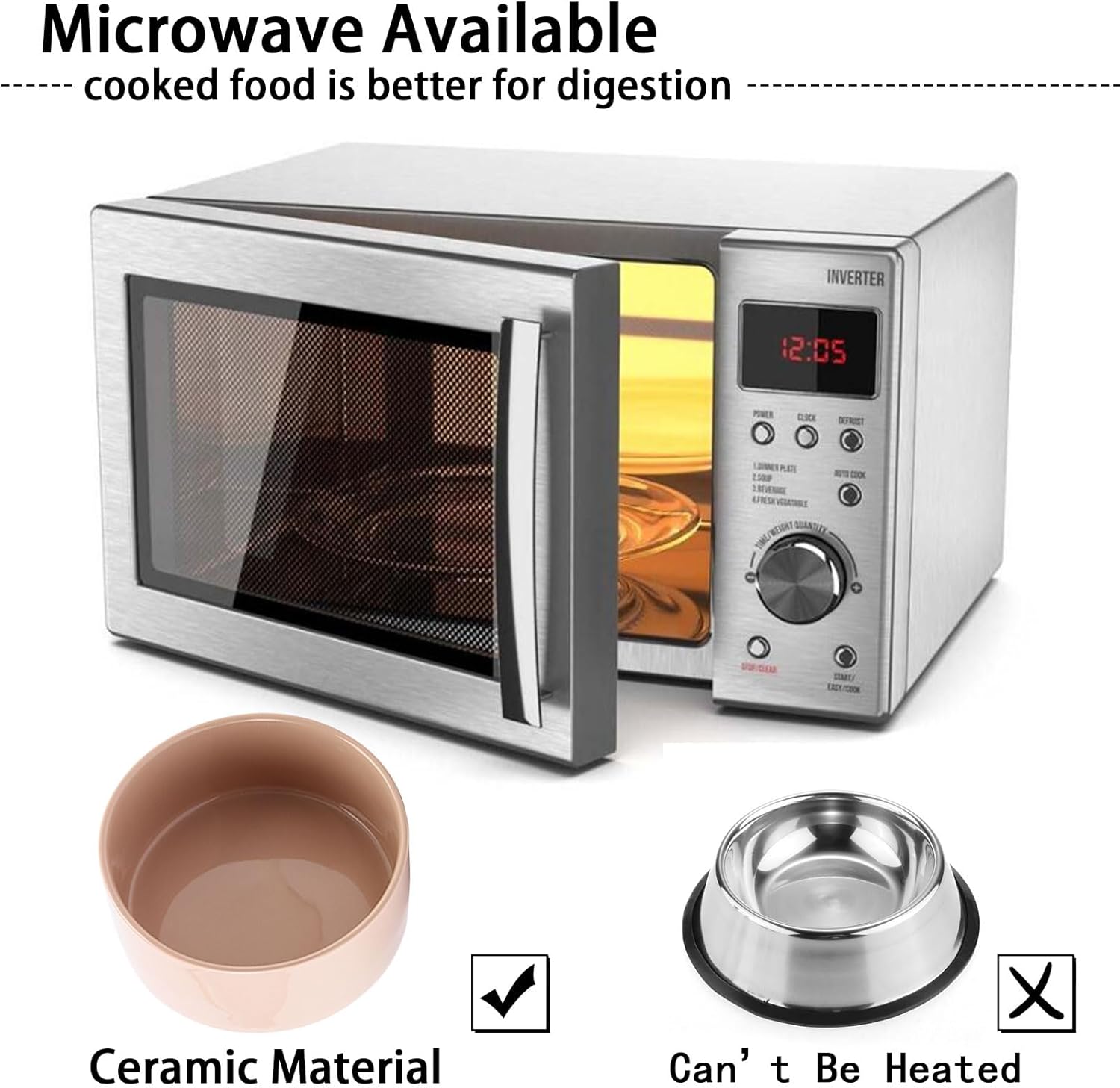• NON SLIP WOOD STAND -You can get two different heights by flipping the bamboo stand,the elevated cat bowls are perfect for cats and small size dogs from different stages of childhood to adulthood, The wood stand on the bowls stopping ceramic cat dog bowl from sliding around, Keeps pet food and water in the bowls.