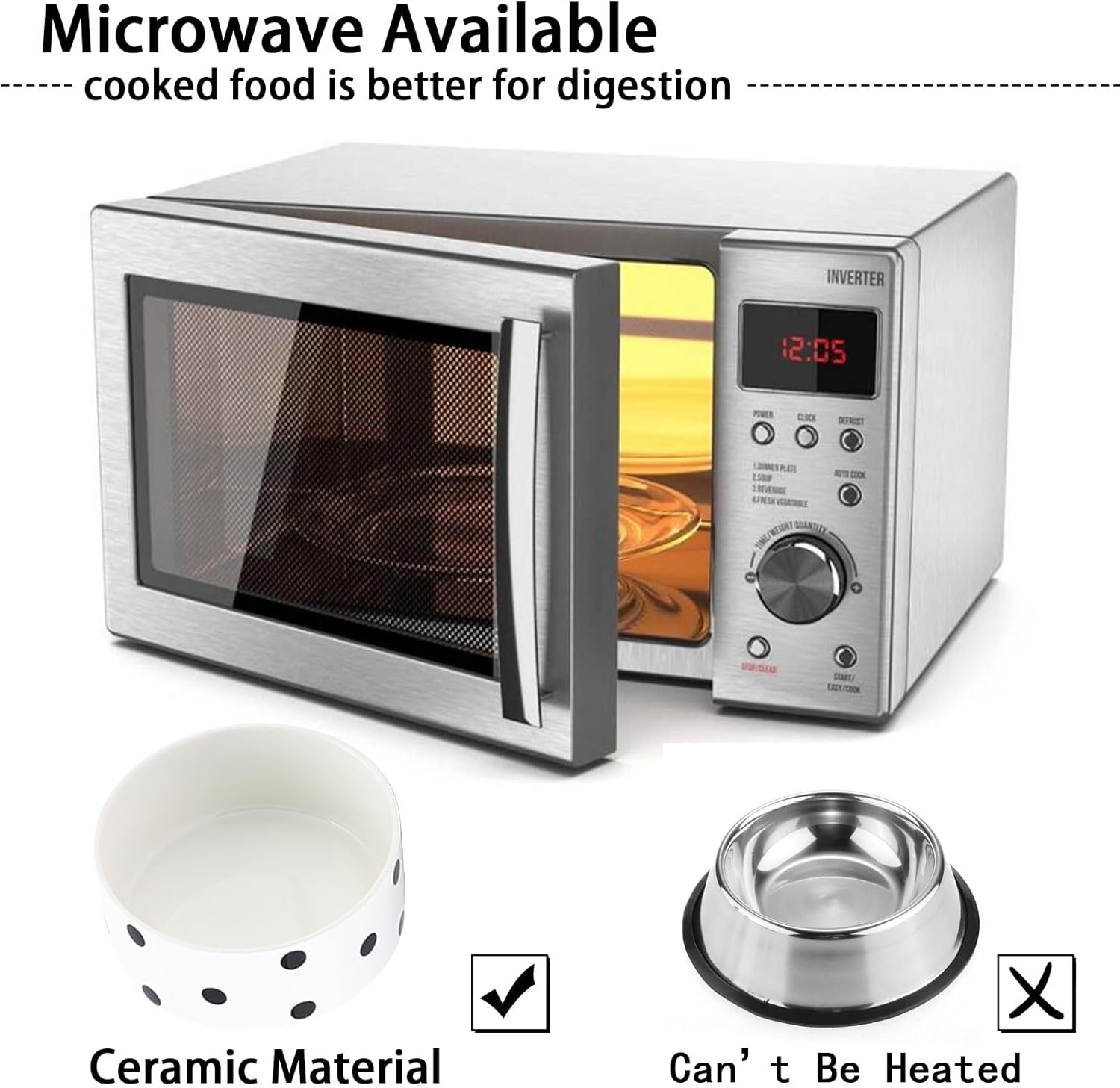 • Easy to Clean and Microwave Safe Ceramic Material - Cute dogs cats bowl with WOOD STAND Easy to Clean and Microwave Safe Ceramic Material - Cute dogs cats bowl with WOOD STAND design matches the home decorations. Ceramic bowl is made of Porcelain, this cat dog food water bowls are free of lead and cadmium. High temperature ceramic, no smell,durable.conveniently dishwasher Microwave safe so this ceramic food bowl can be easily cleaned. No Fuss.