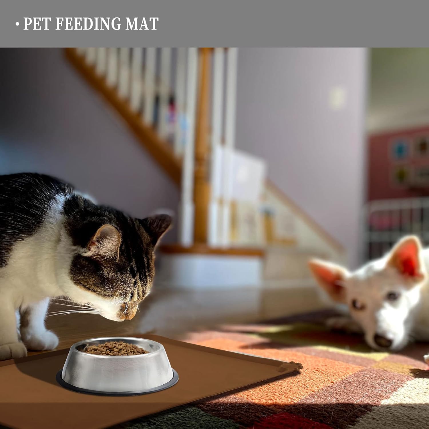 • Anti-slip design: our non-slip pet feeding mat ensures stability for your pet's bowl, preventing any water stains or spills on the floor. Enjoy peace of mind when feeding your pet, knowing that their food stays in place