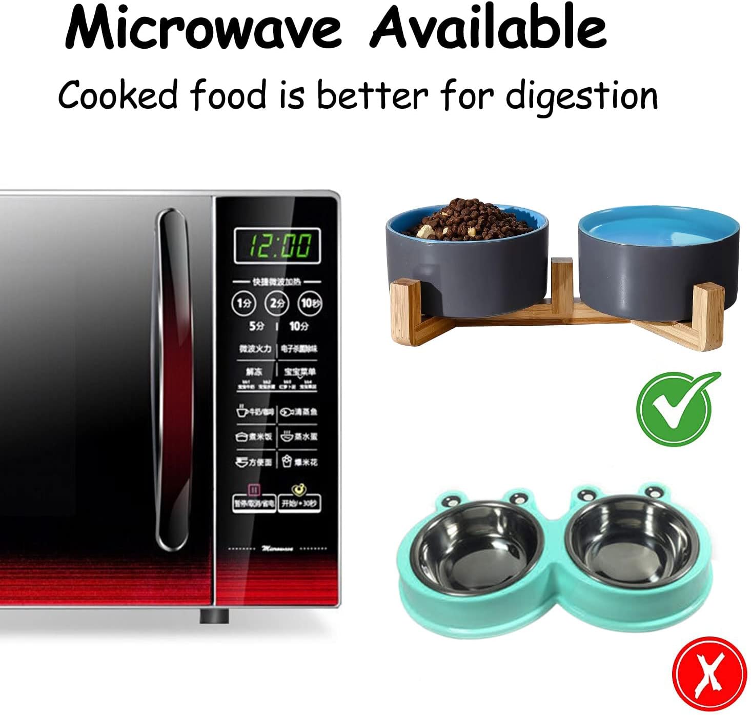 • Natural Wooden Stand:Unique wooden stand can effectively prevent food from spilling and keep the floor clean and tidy. Non-Slip bowl base, making it easy to pick up and put down