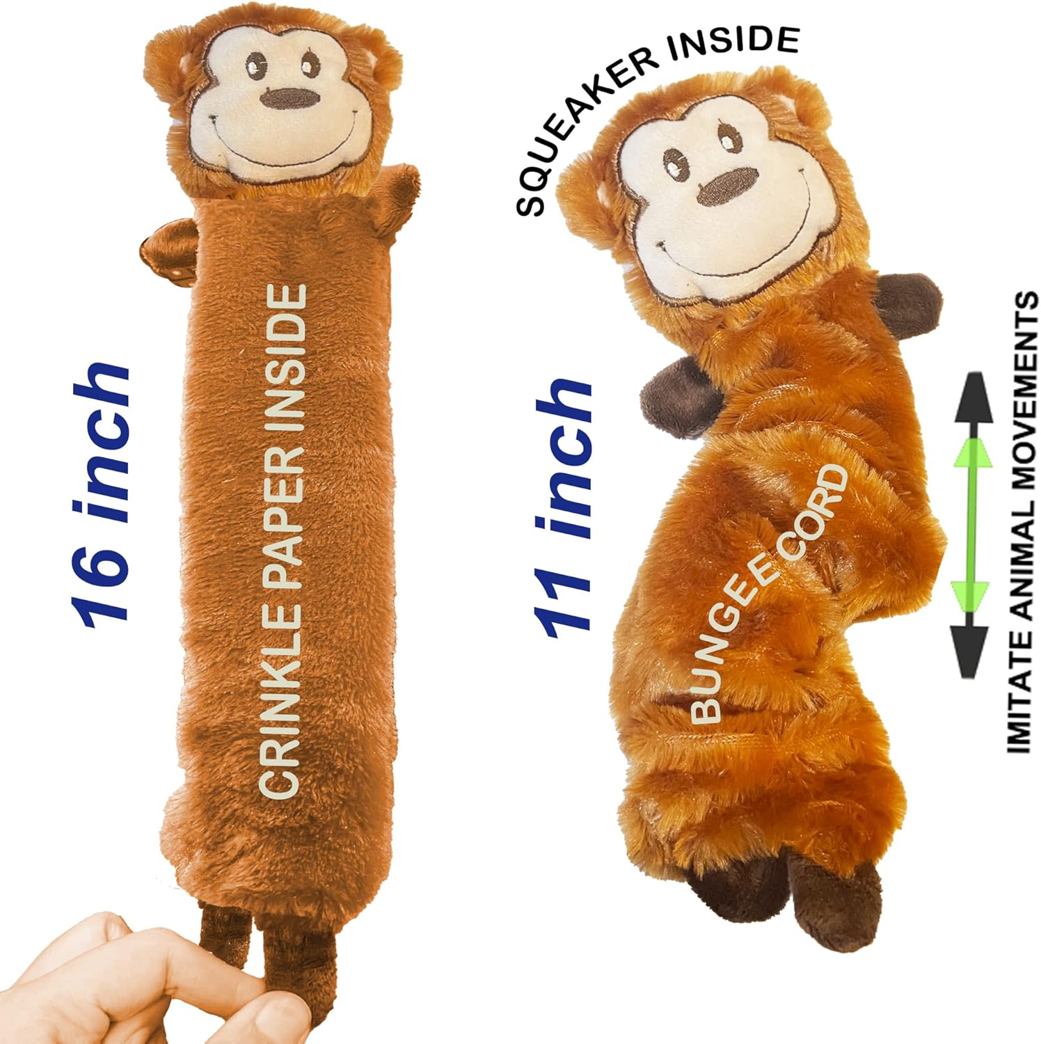 • NO STUFFING, NO MESS: Our new set of animal character crinkle toys, is now stuffingless, which means no mess to clean up.