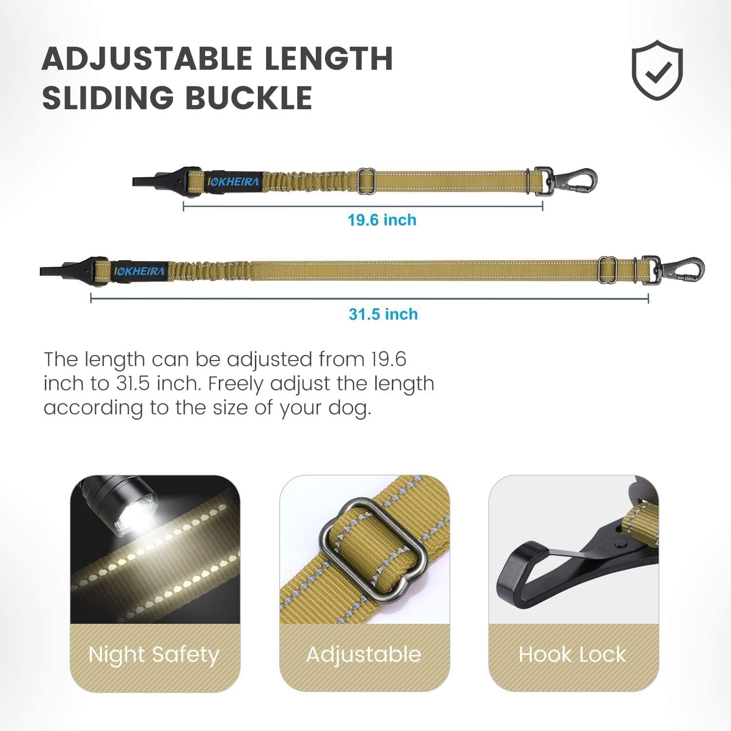 - ◆◇Energy Absorption System: IOKHEIRA dog car harness seatbelt car tether has Up to 600N/m buffer ultra-high energy absorption design. This energy absorption system can reduce the impact on dogs to cope with emergencies effectively. That the length range of this product can be adjusted from 19inch to 31inch can be applied to dogs of different sizes.