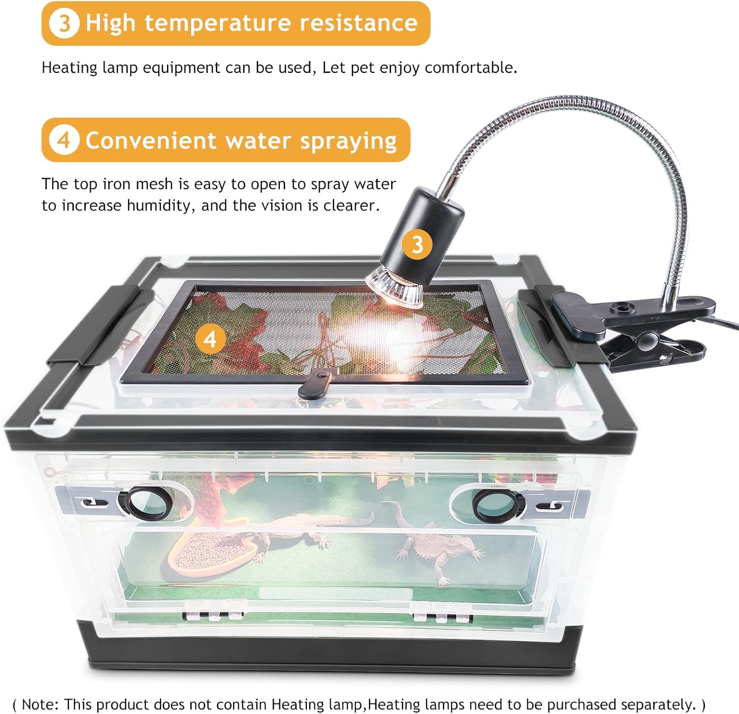 • 5. [Heating lamp can be used] the top iron mesh design can be opened to facilitate the pet spray water to increase humidity, high temperature resistant materials, you can use the heating lamp equipment