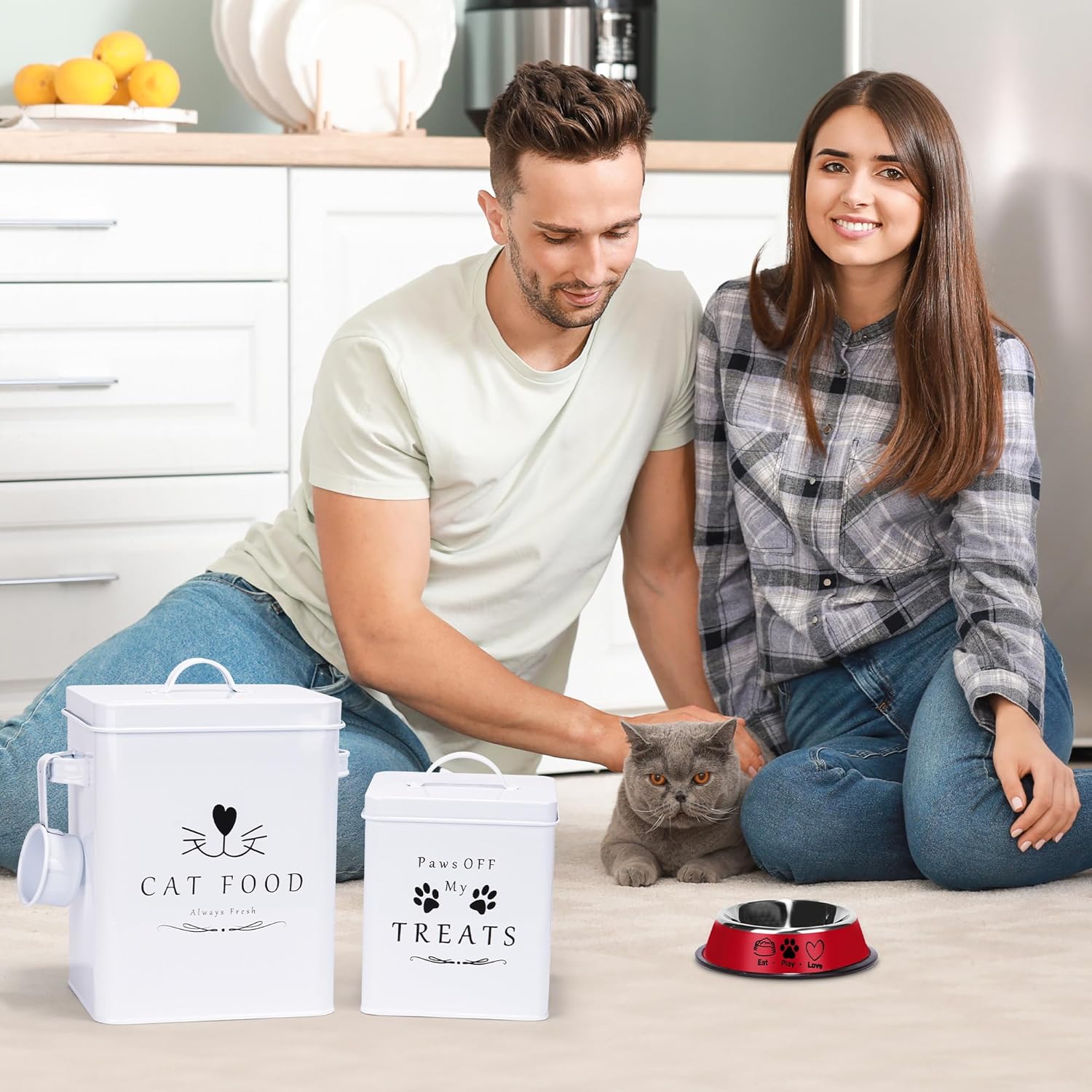 • π—”π—Ÿπ—ͺ𝗔𝗬𝗦 𝗙π—₯π—˜π—¦π—› 𝗙𝗒𝗒𝗗! This white metal cat food container set is made of Powder Coated Metal Steel and is covered by tight-fitting lids creating the perfect storage environment. Long-lasting freshness for your cat's food!