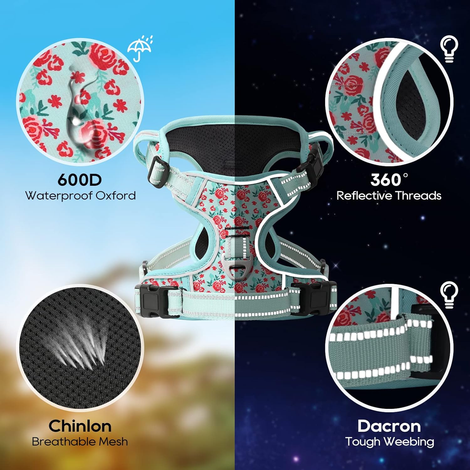 • 【MUCH SAFER & MORE COMFORTABLE】 Breathable mesh lining with soft sponge padding plate of puppy harness prevents injuries, giving extra comfort and protection with enhanced 1600D oxford fabric. The reflective material will be really nice when it gets dark. Also, your dog will be saw easily. This reflective material can make drivers have long time to react, which ensure your dog’s safety!