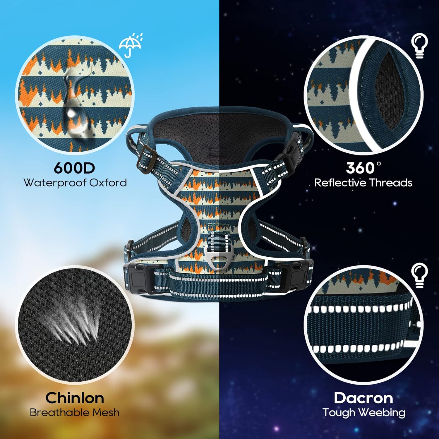 Timos Dog Harness, No-Pull Pet Harness with 2 Leash Clips, 3 Snap Buckles Adjustable Soft Padded Dog Vest, Reflective No-Choke Pet Oxford Vest with Easy Control Handle for Small Medium Large Dogs
