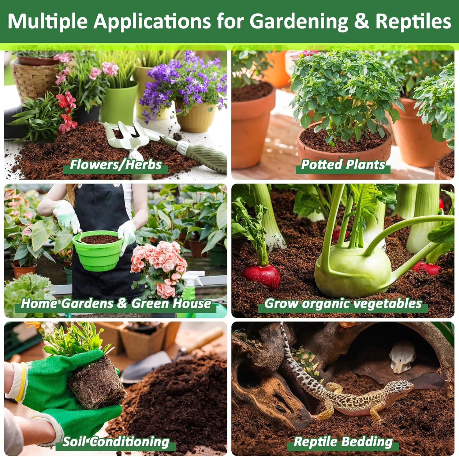 • Wide Application: Suitable for all gardening applications, potted plants, grow microgreens, container gardens, raised garden beds, indoor plants, flowers, vegetables, herbs; Also suitable for bedding of various reptiles, it worked great for making organic compust; Tips: When mixing with water to hydrate make sure to start out slowly so you achieve the consistency you want