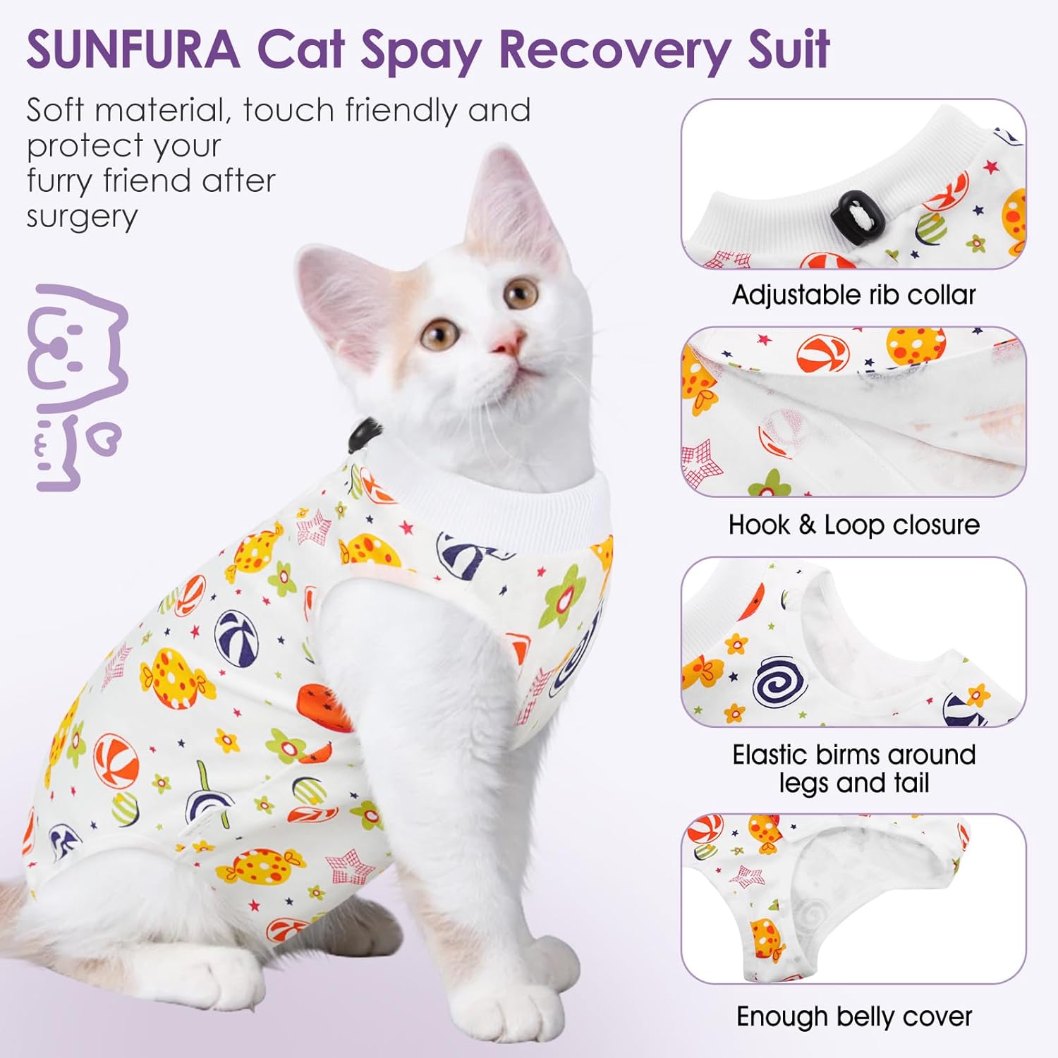 SUNFURA Cat Recovery Suit, Kitten Surgical Full Bodysuit for Abdominal Wound Protector Anti Licking After Surgery, Professional Bandages Cone E-Collar Alternative for Small Male & Female Pets