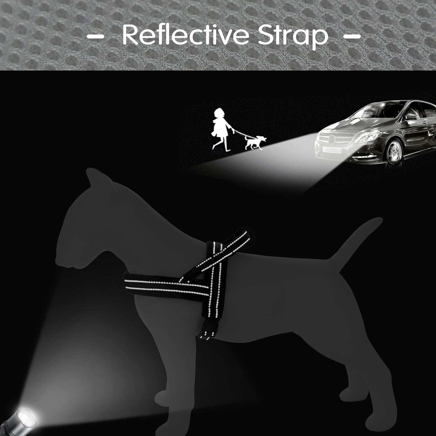 • Comfortable Wearing & Safety Walking - There are soft mesh pads beneath the straps for dog neck and back, pads are wider than straps to make sure dog comfortable feel for each pulling; 2 reflective lines along each strap is helpful to keep your dog safe for night walking;