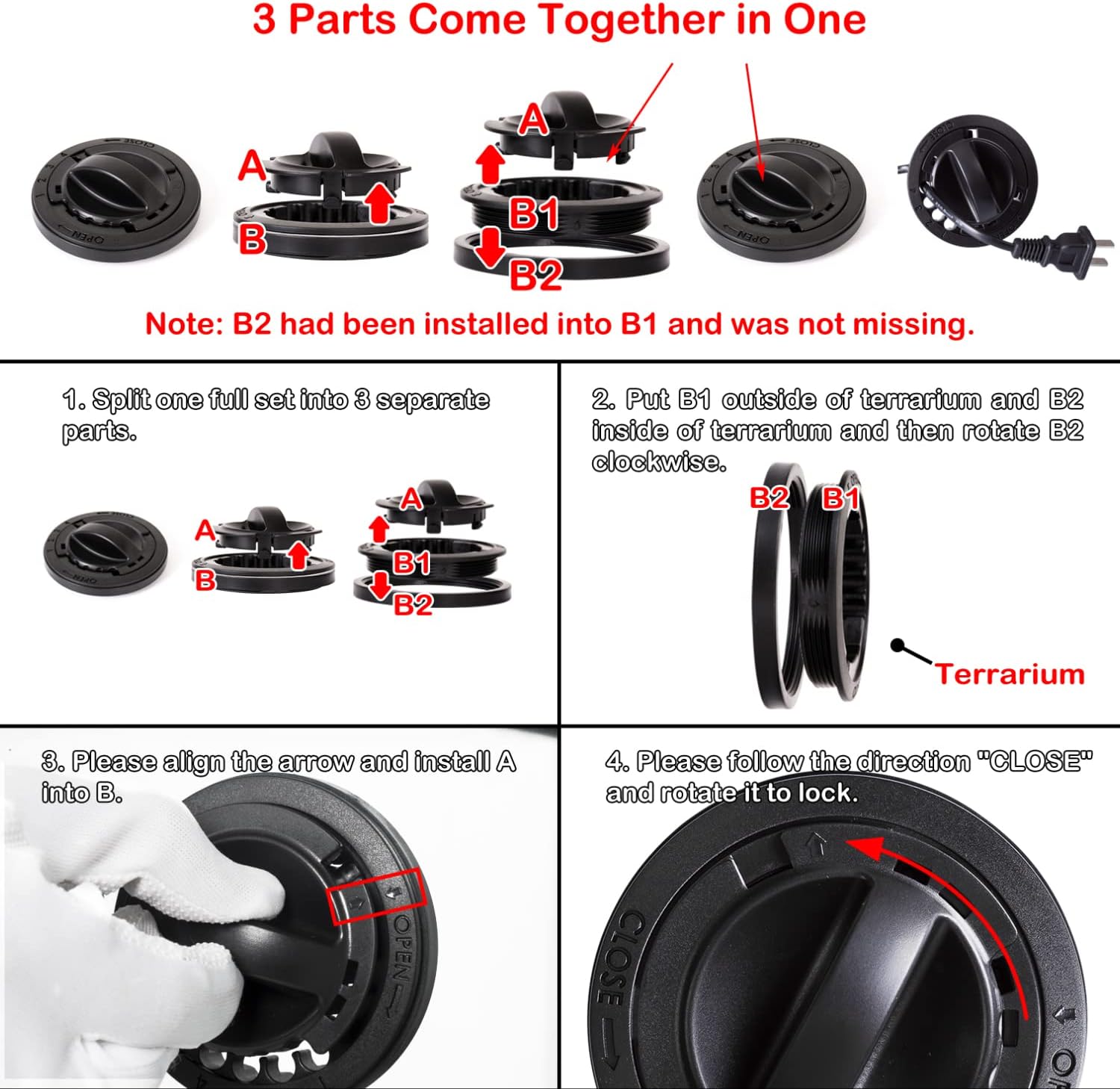 • Removable top mesh screen provide plenty of proper air-flow and allows full spectrum, UVB and IR light penetration. There is a cable pass on the right side, the rotating fixed structure can hold max 4 lines.