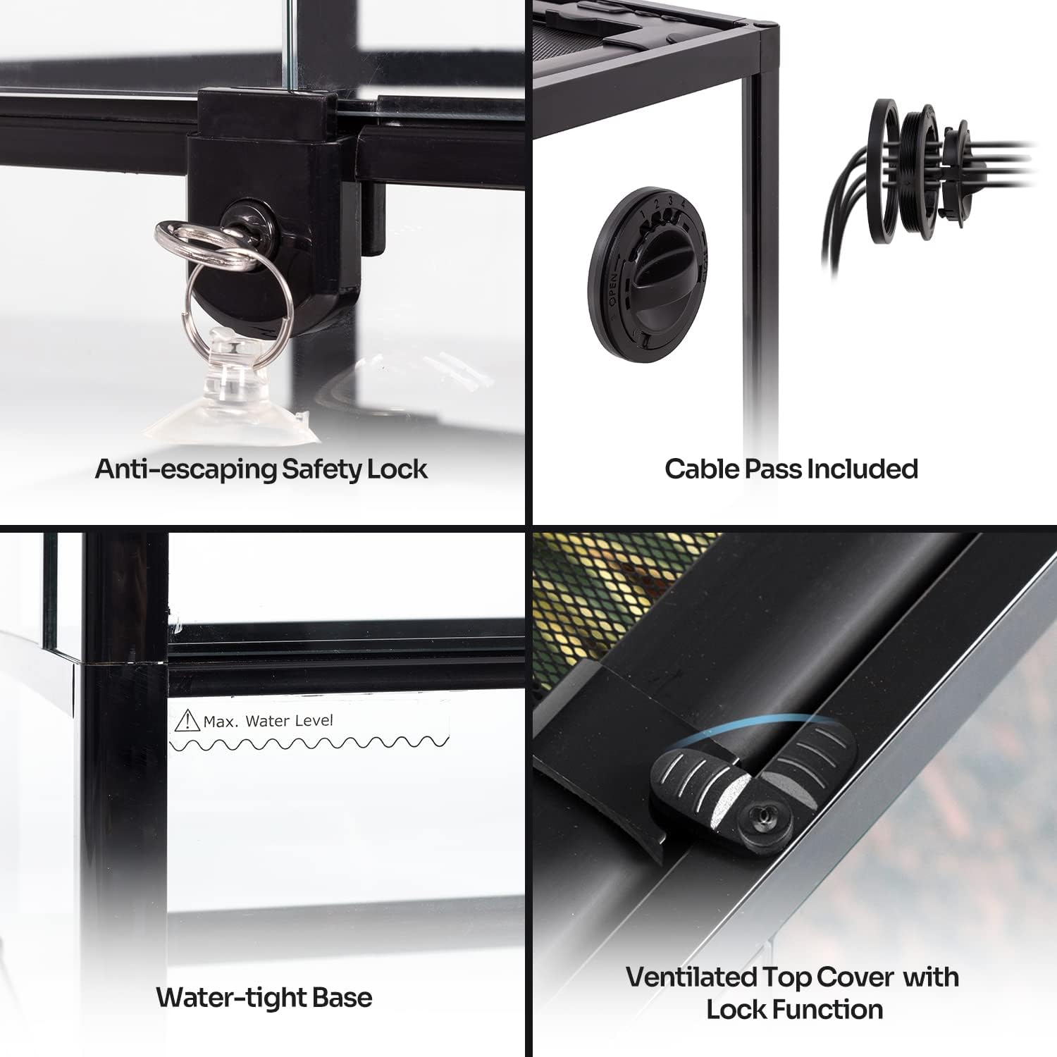 • [Patent Design]: This 45 gallon reptile terrarium made of high quality tempered glass, it's is sturdy and safe.
