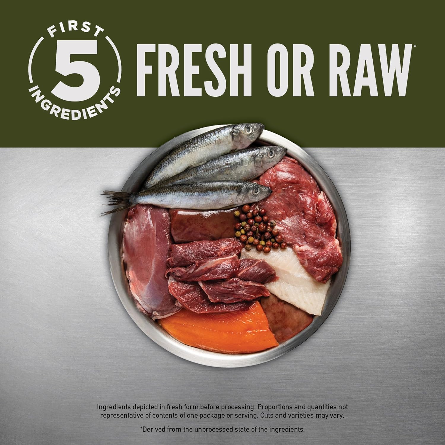• First six ingredients are fresh or raw*** duck, Arctic char, rainbow trout, whole pilchard, ranch-raised venison and pork liver