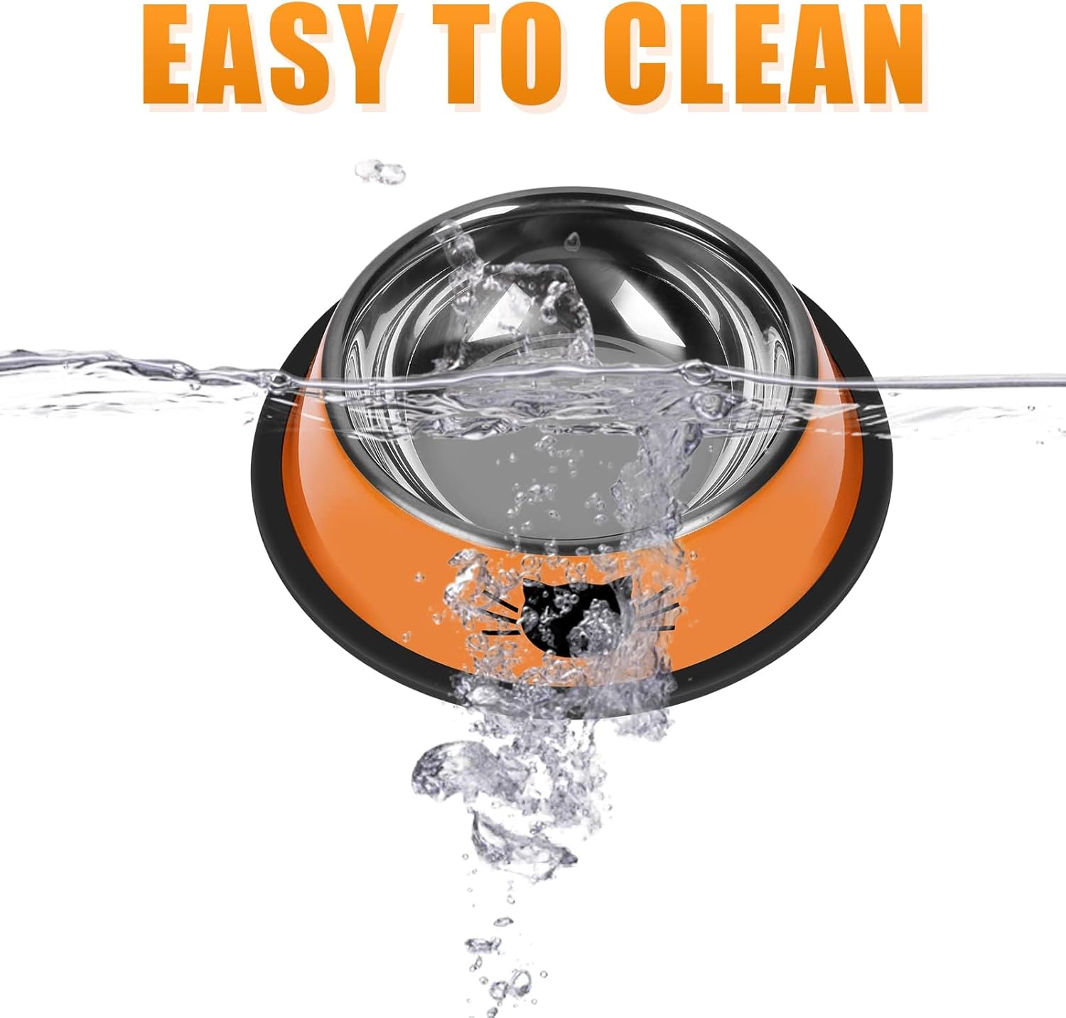2Pcs Cat Bowls Non-Slip Stainless Steel Small Cat Food Bowls Unbreakable Thicken Cat Feeder 7 Oz Cat Dishes Suitable for Indoor Small Pets Removable Rubber Base Easily Clean Lovely Color