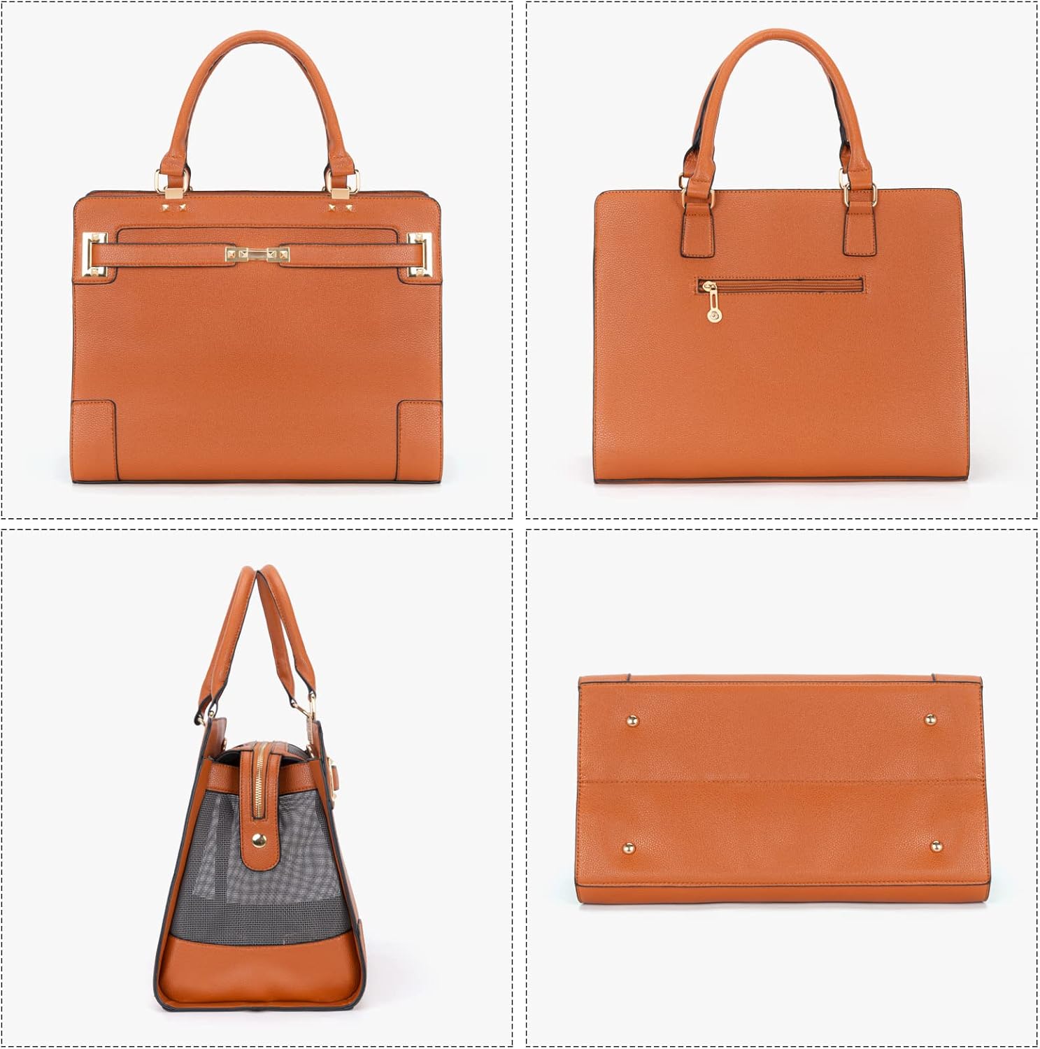 Fashion Pet Carrier Dog Cat Carrier Purse Soft-Sided Leather Handbag Pet Tote Bag for Small Dogs Puppy and Cats TSA Airline Approved (Brown)