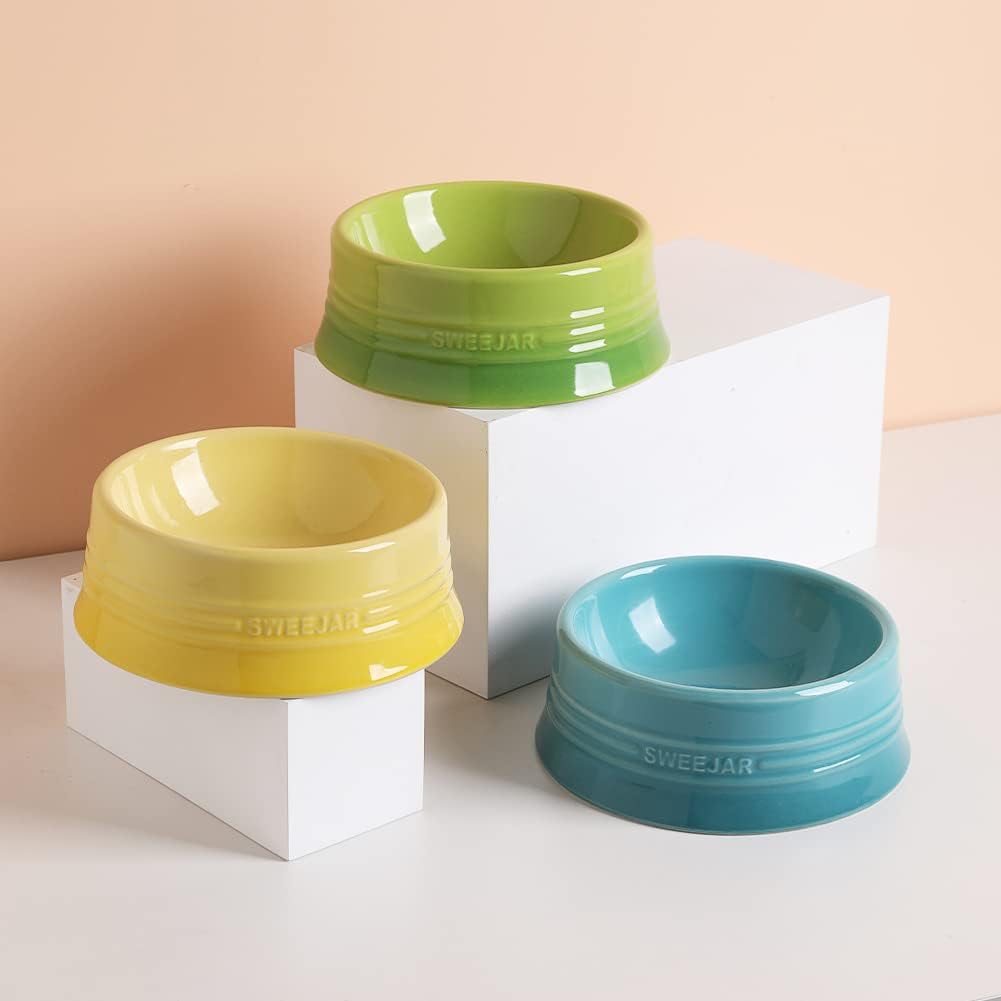 • Non Skidding - SWEEJAR dog bowls are made of food grade porcelain, microwave & dishwasher safe, easy to clean. The ceramic is heavy to help keep the bowl upright when dog eat food. No messy floors to clean.