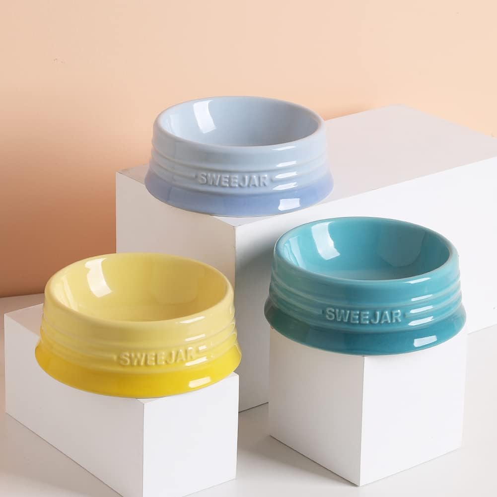 • Non Skidding - SWEEJAR dog bowls are made of food grade porcelain, microwave & dishwasher safe, easy to clean. The ceramic is heavy to help keep the bowl upright when dog eat food. No messy floors to clean.