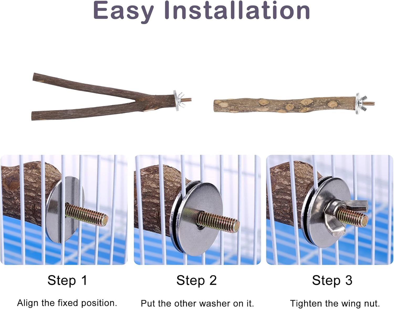 • 【Easy Installation】: The bird perches are suitable for all bird cages. Each bird perch is equipped with built-in bolt and wing nut, super easy to install and dismantle. Once intalled it will not fall off from the cage, safe for birds to rest or play on.