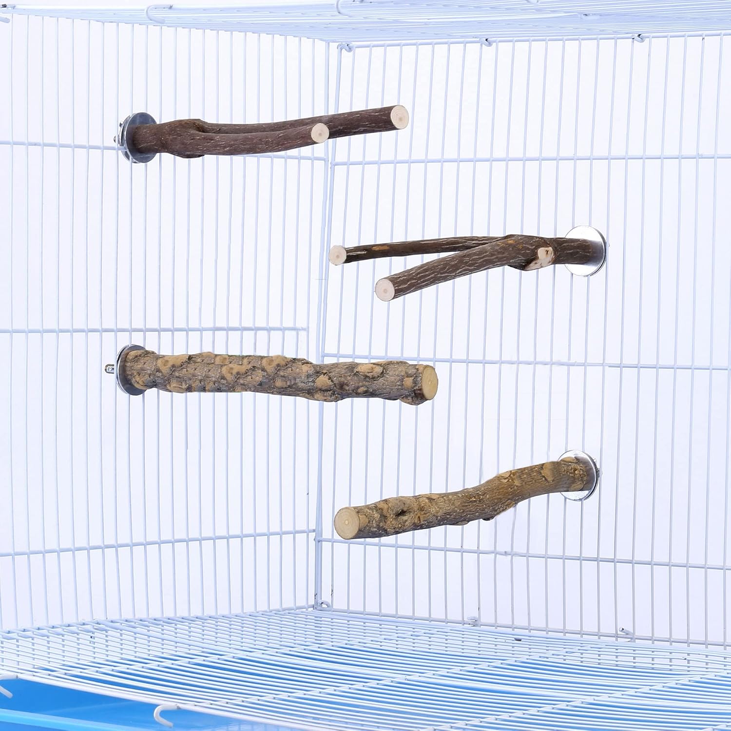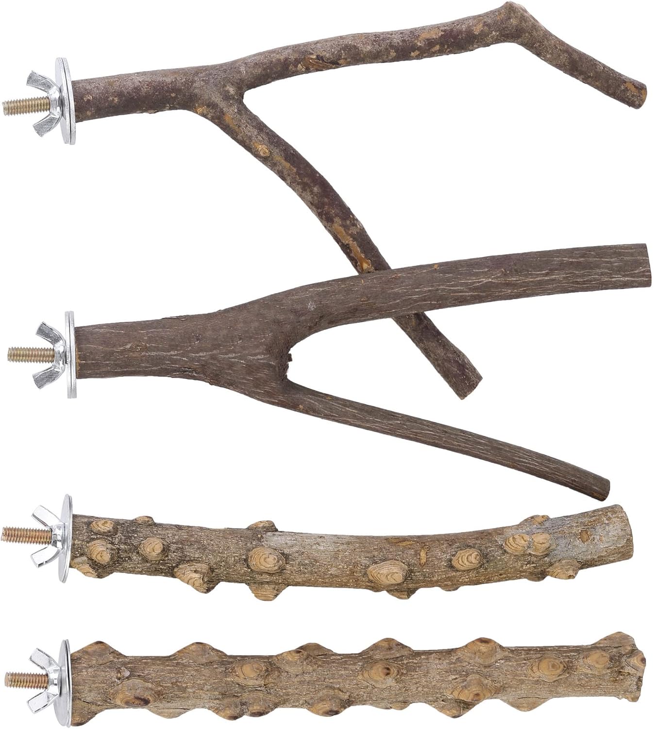 CozyCabin Natural Wood 4Pcs Bird Perches Stand, Hanging Cage Toys Accessories for Small Parrot Budgies Conure Parakeets Cockatiels Lovebirds