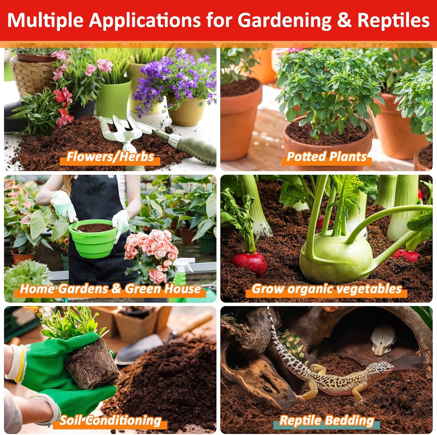- Versatile Growing Medium: Coconut fiber bricks can meet all your gardening needs; Widely used for raised beds, container gardens, hanging baskets, or grow bags, indoor plant soil and outdoor potting soil; Suitable for soil conditioner, or directly used for pot planting, can also be used for composting, worm castings, reptile bedding, terrariums substrate
