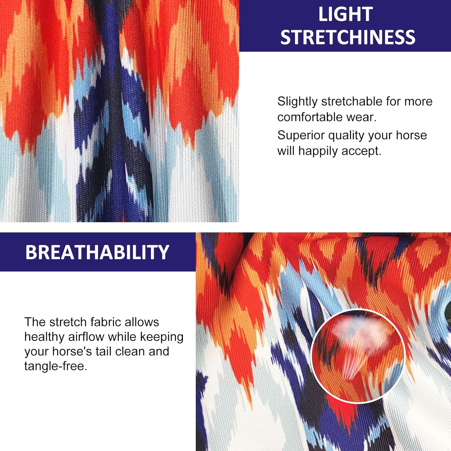 • Breathable: High level of breathability allows healthy airflow while keeping your horse’s tail clean, tangle-free, and lasts in all weather conditions.