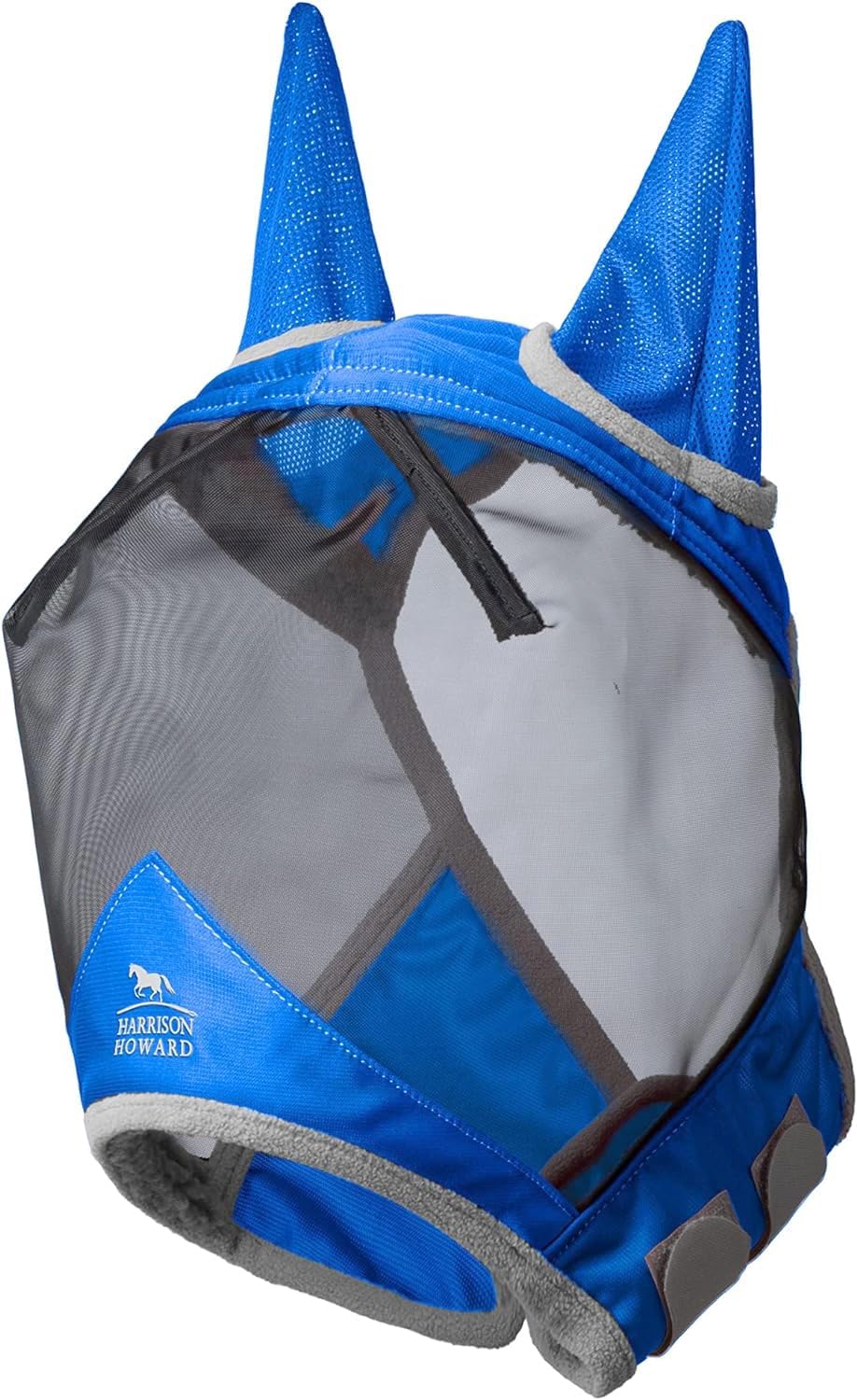 Harrison Howard Pro Luminous Horse Fly Mask Large Eye Space Standard with Ears UV Protection for Horse Signature Blue Small Pony