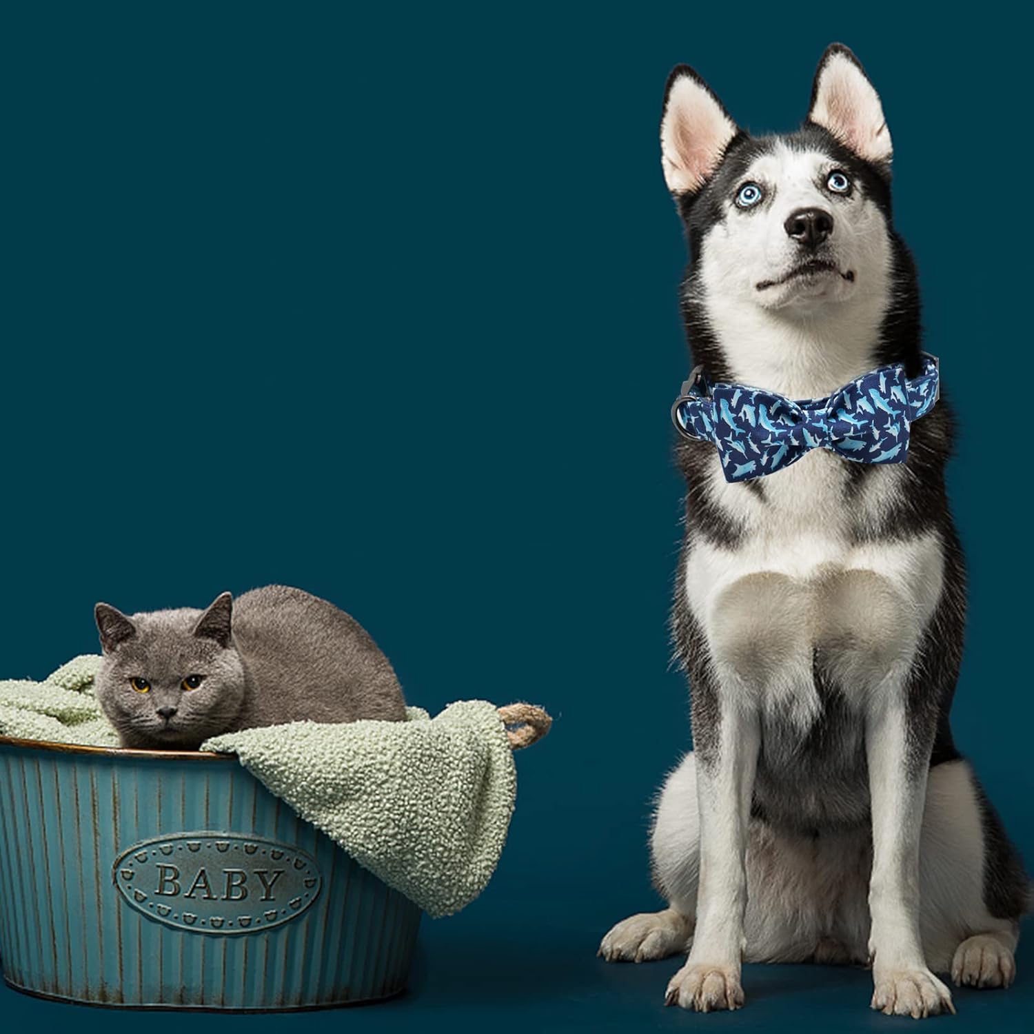 Elegant Little Tail Dog Collar with Bow, Shark Print Adjustable Cute Bowtie Collar for Medium Dogs